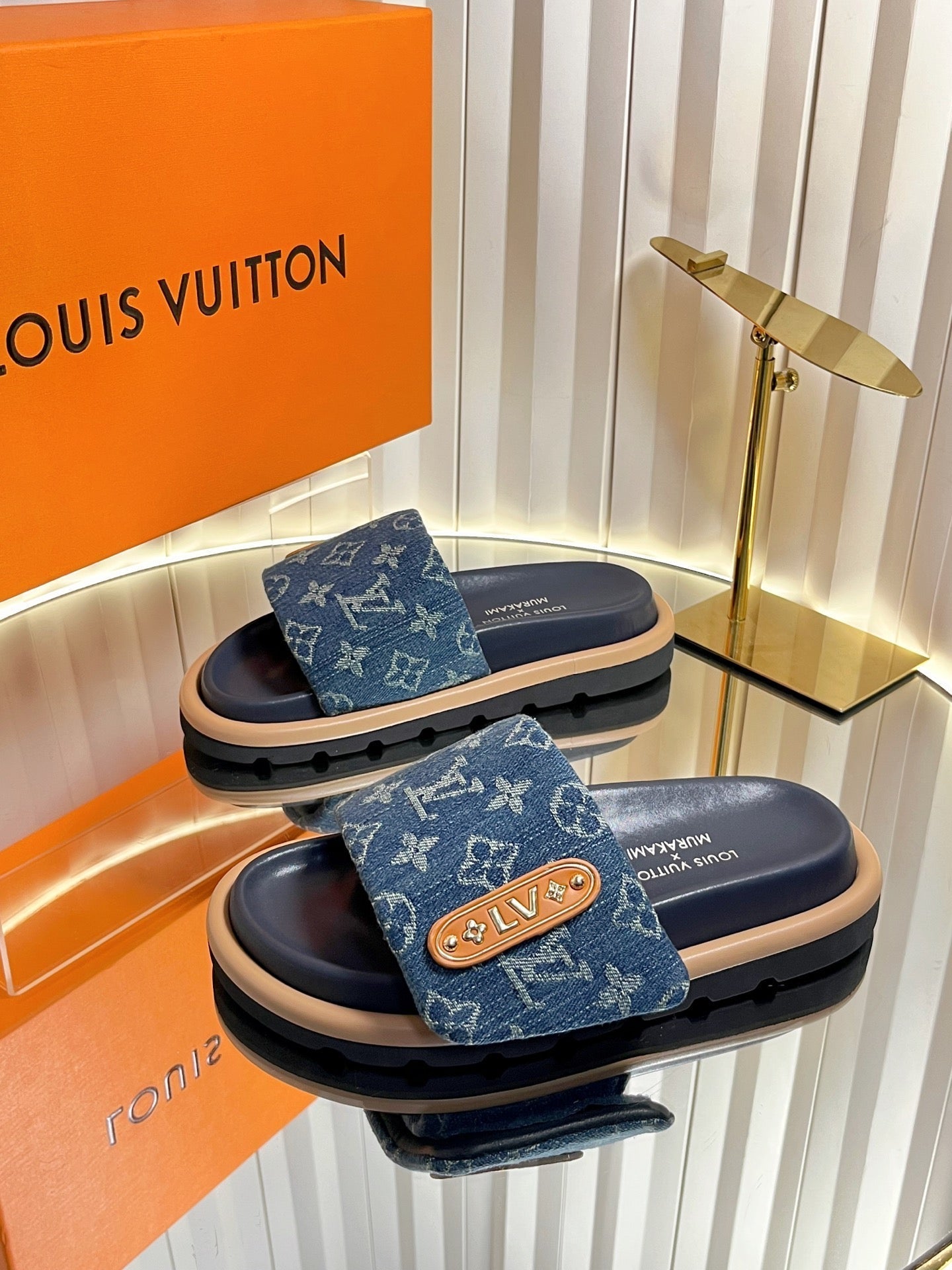 LV 26s Slippers Dark Blue Denim Sheepskin 616358