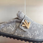 LV Birkenstock Sandals Grey Denim Monogram Shearling Lining 509700