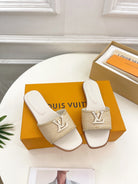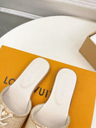 lv capri flat mule beige raffia cream calfskin