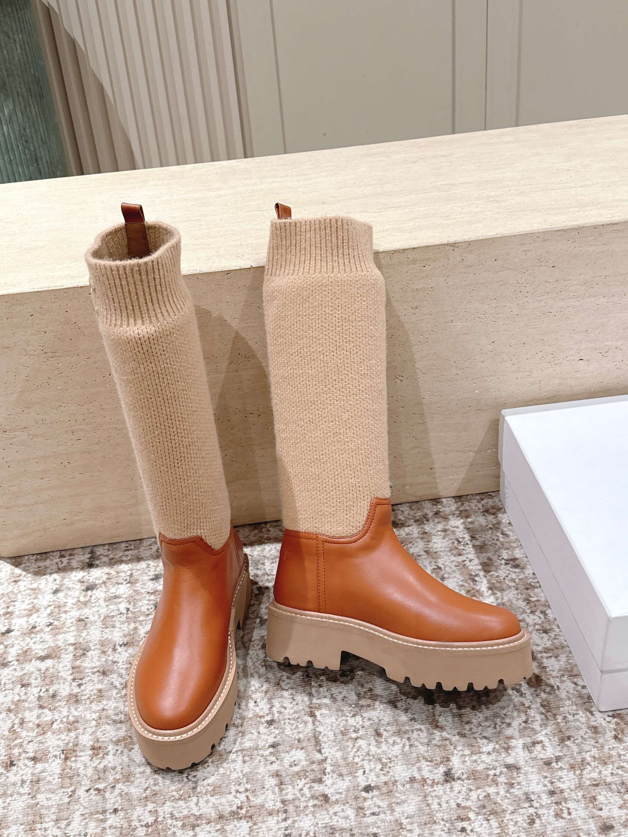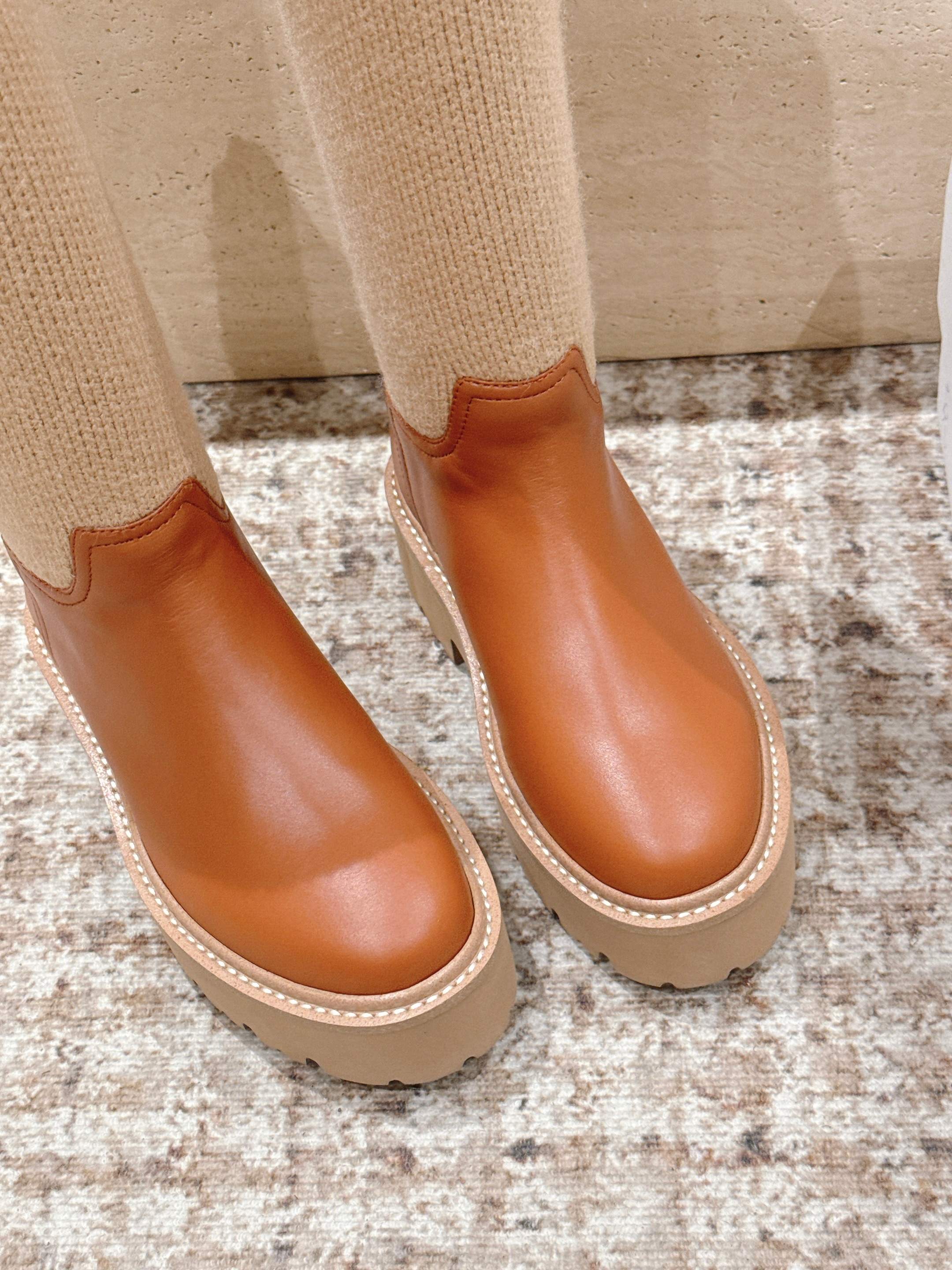 LV Celine Margaret Chelsea Boots Orange Beige Calfskin and Woolen Fabric 532985