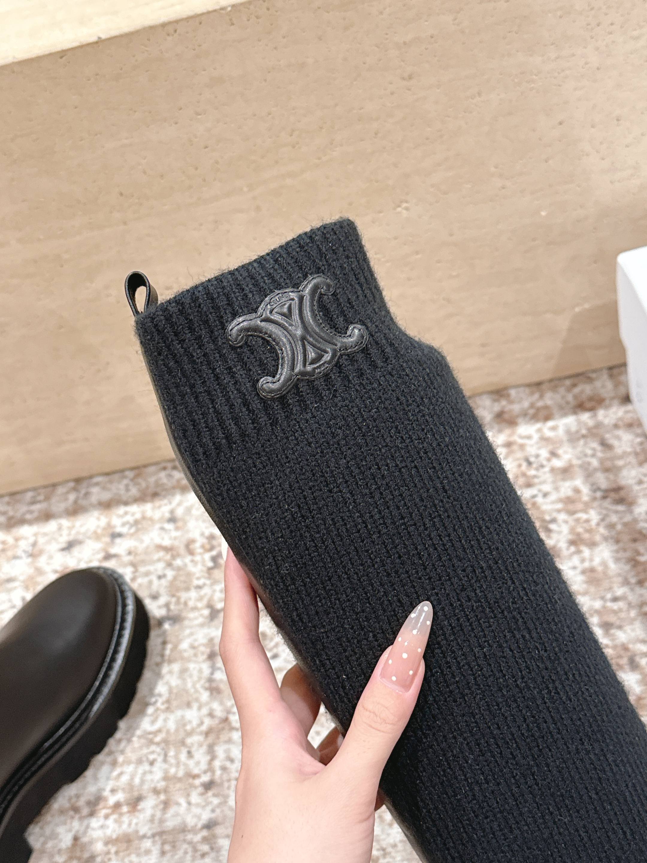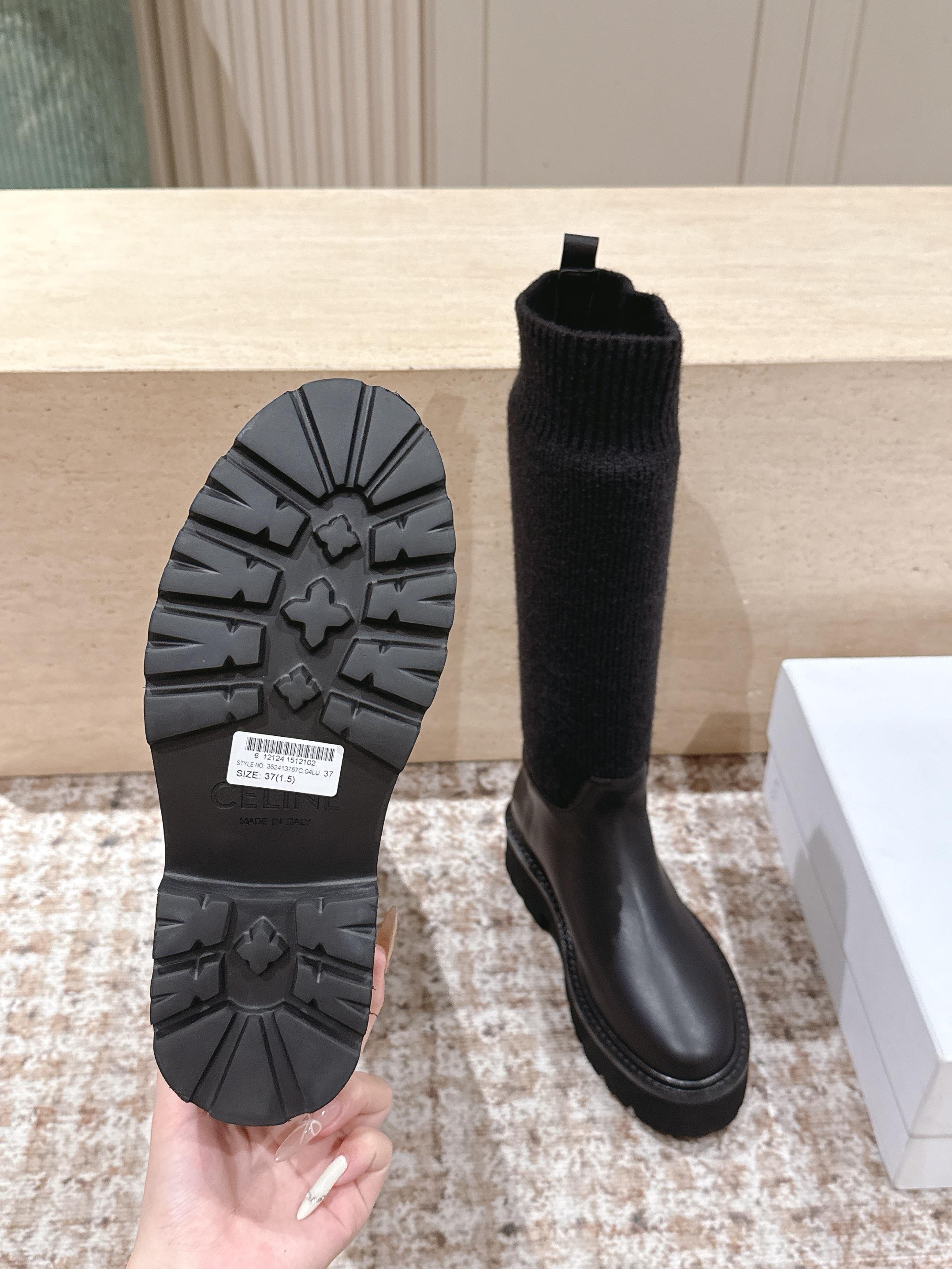 LV Celine Margaret Chelsea Boots Dark Brown Calfskin and Woolen Fabric 532986