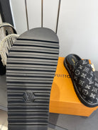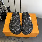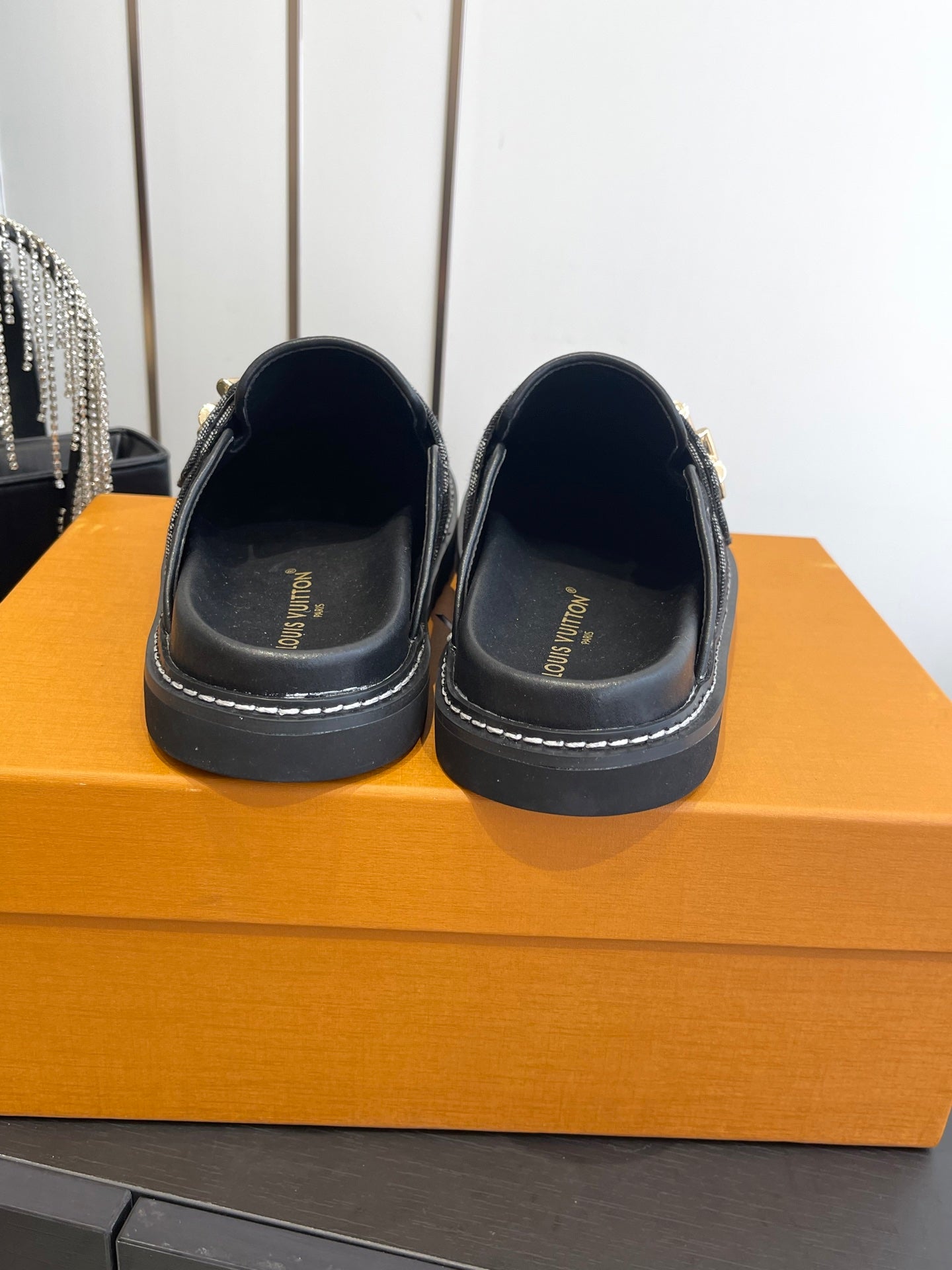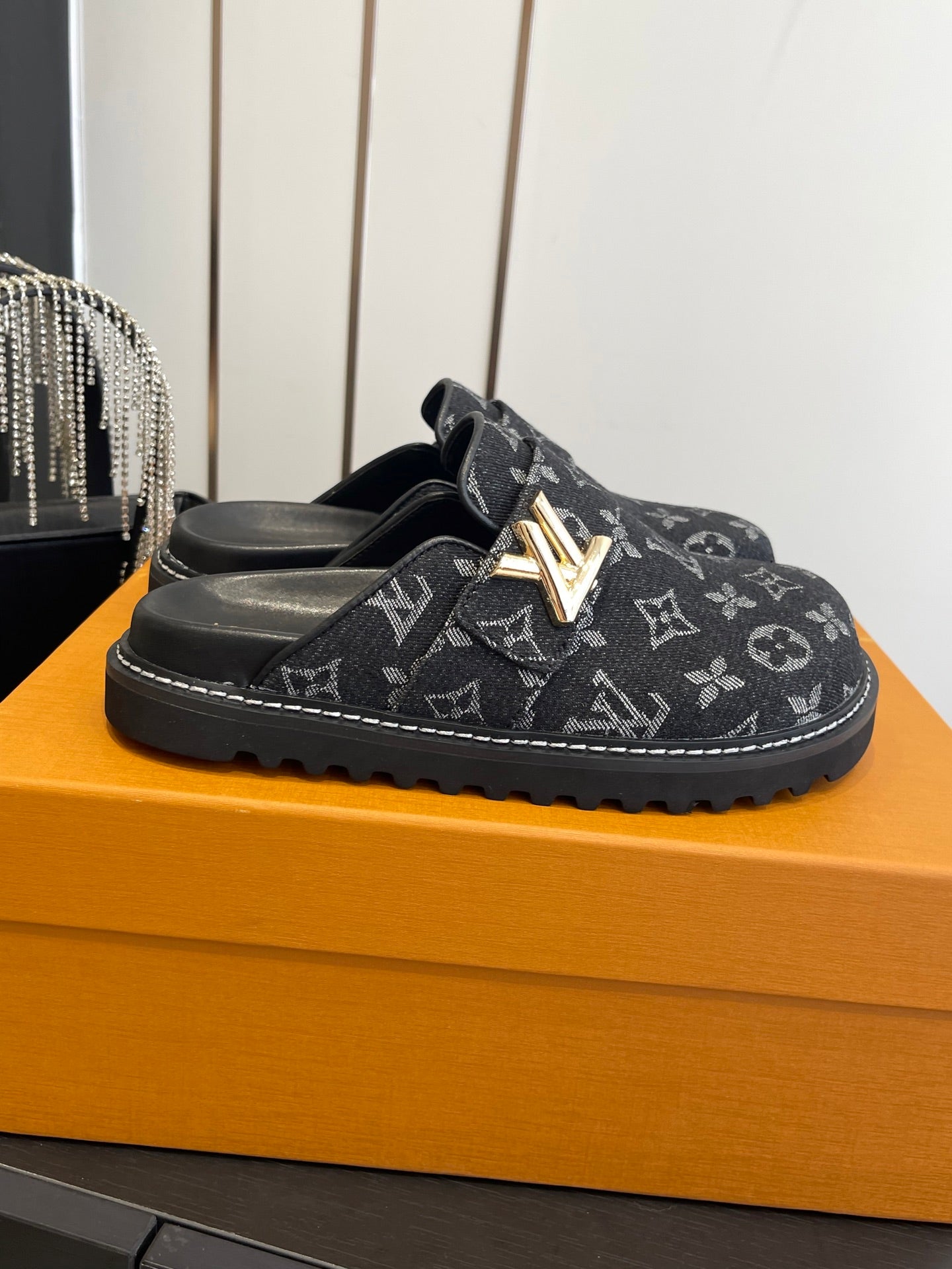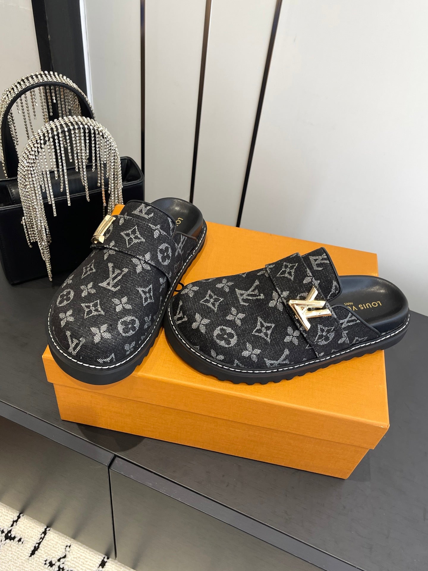 LV Cosy Comfort Mule Sandals Black Gold Denim Monogrammed 533457