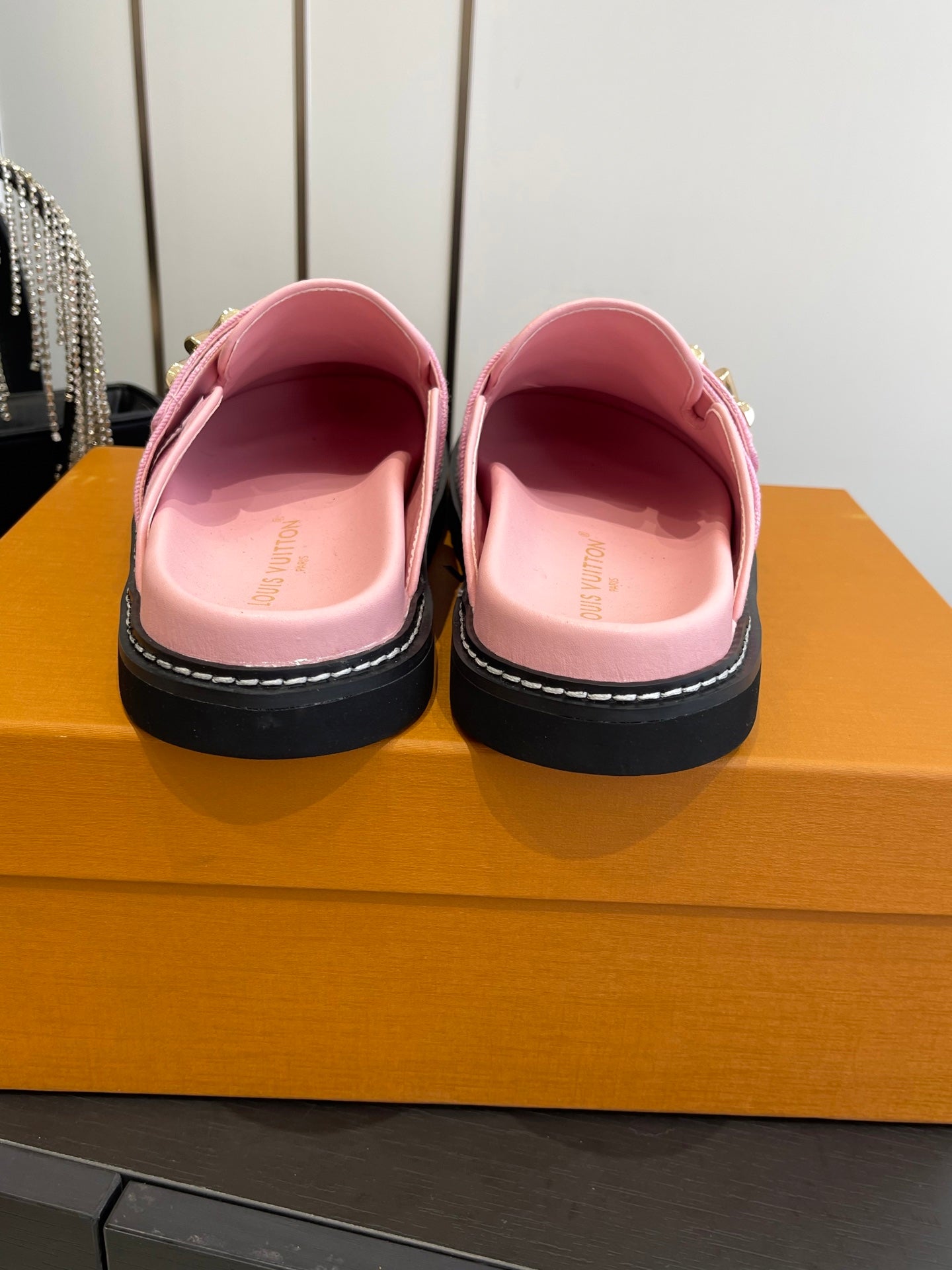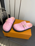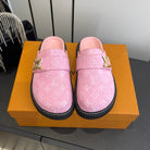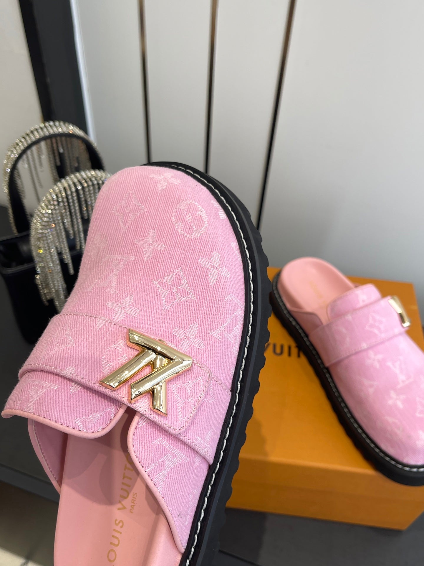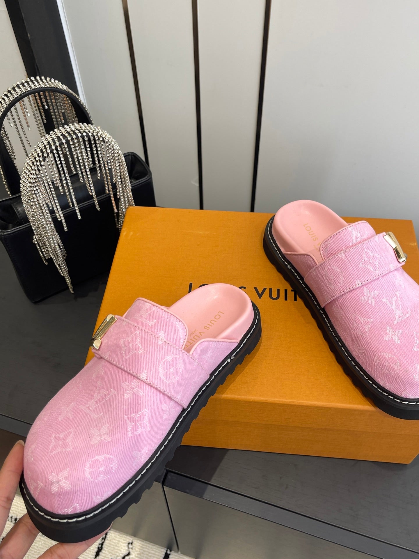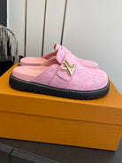 LV Cosy Comfort Mule Sandals Pink Gold Denim Monogrammed 533459