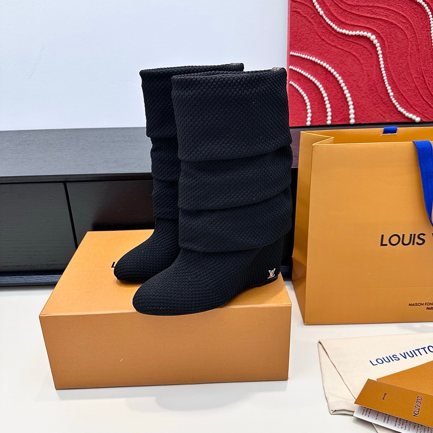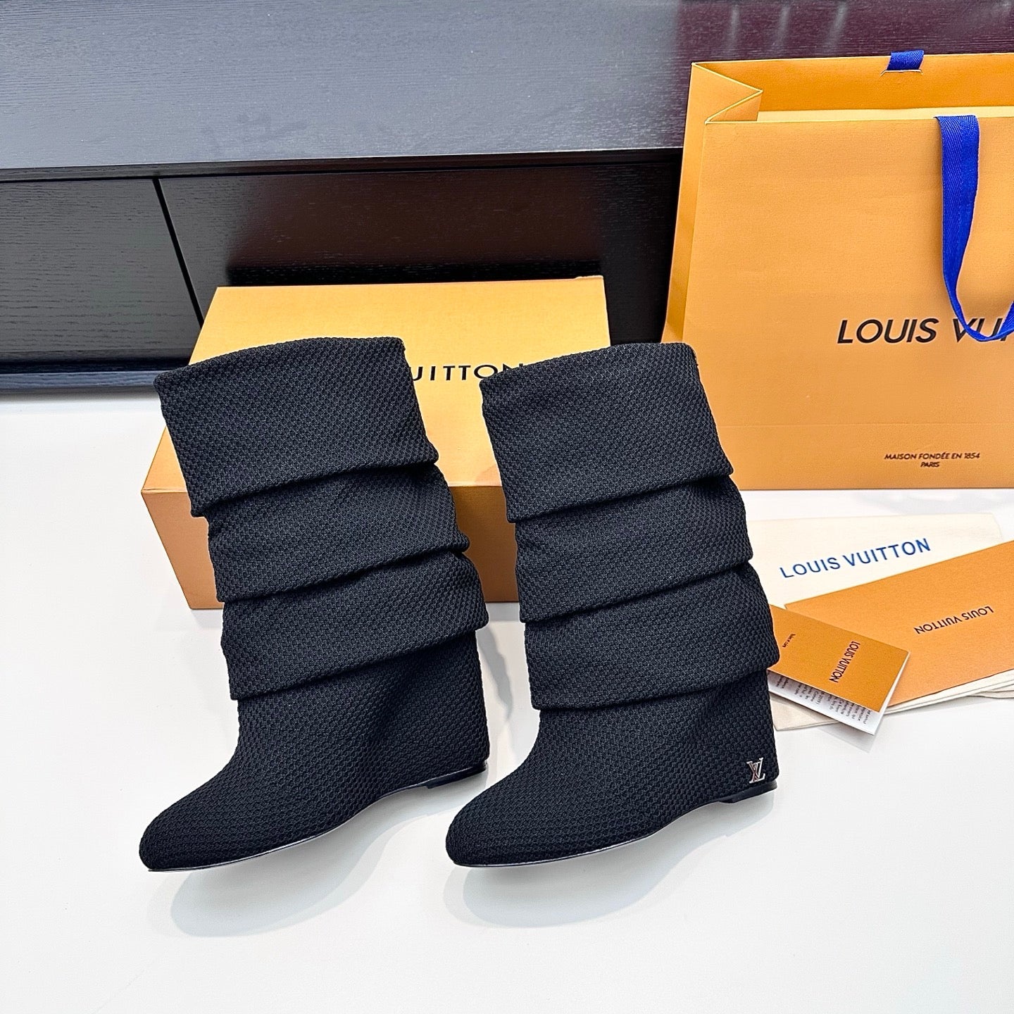 LV CSummer Mid Wedge Boot Black Knit 542224