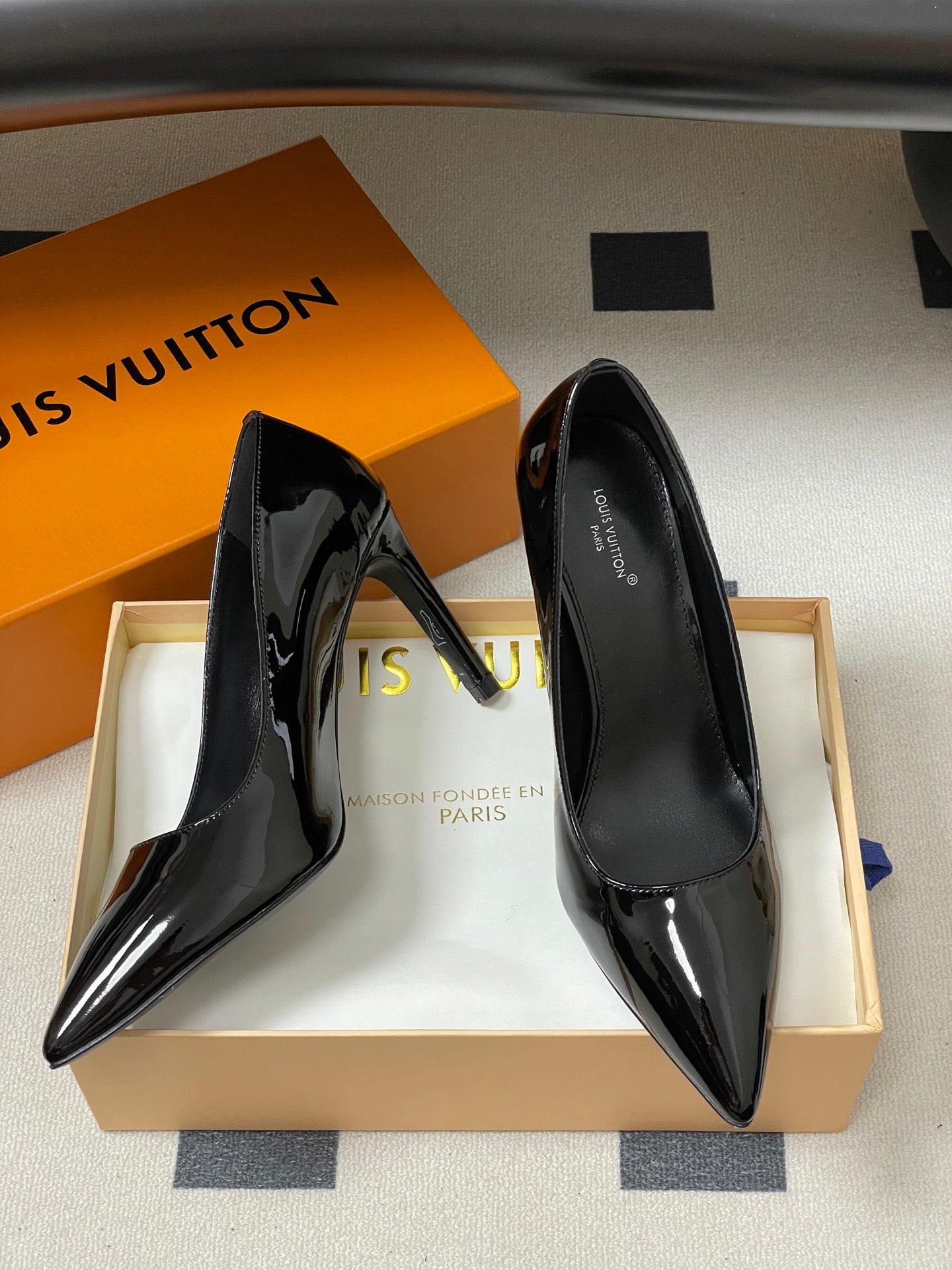 LV GALA High Heels Series Shoes 85mm Black Patent Leather 534542