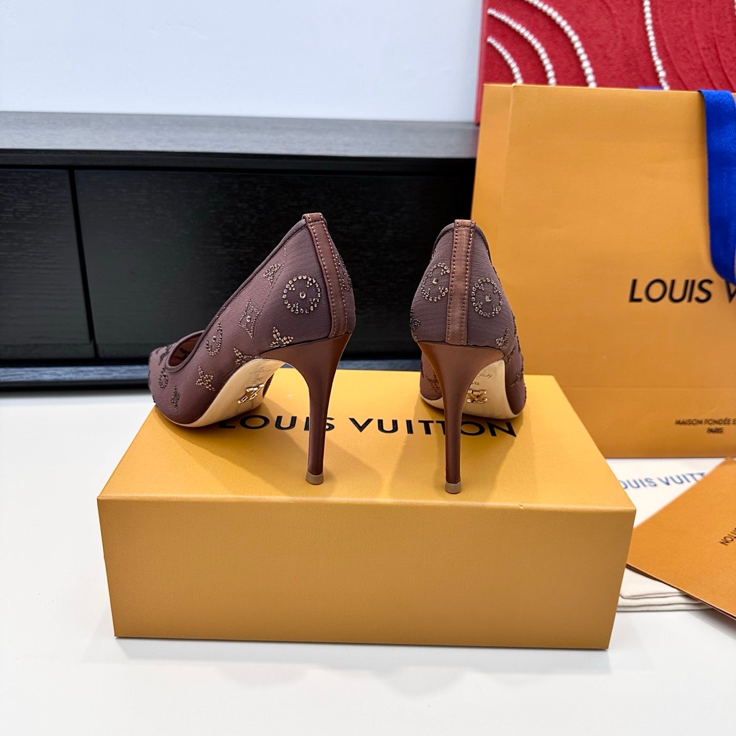 LV GALA High Heels Series Shoes 95mm Dark Rose Taupe Mesh 542214