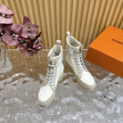 LV Laureate Platform Desert Boot 70mm White Denim Fabric