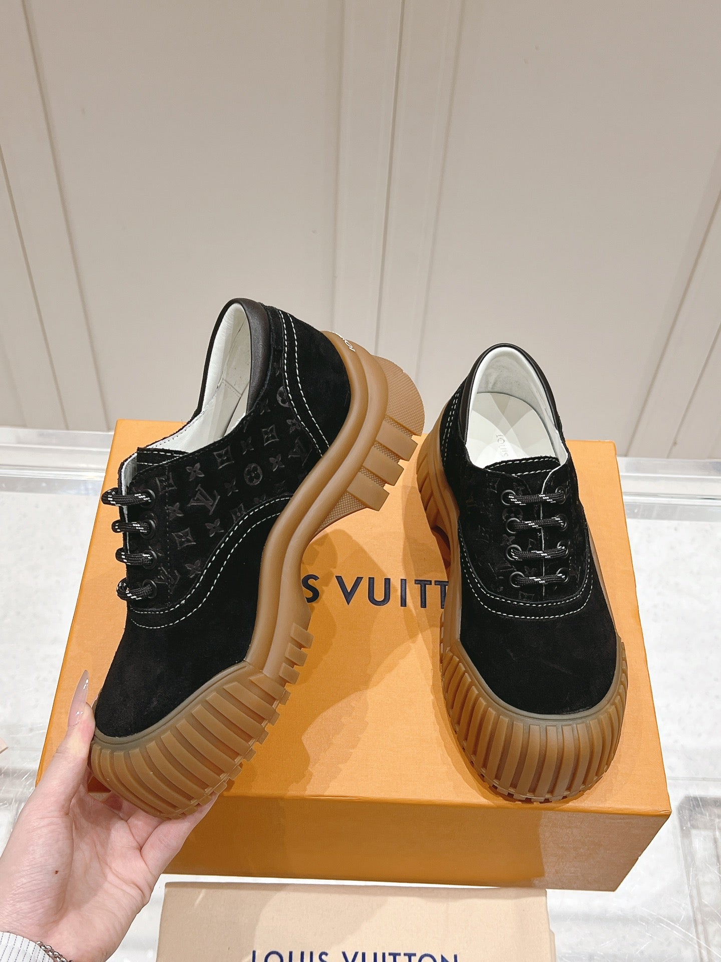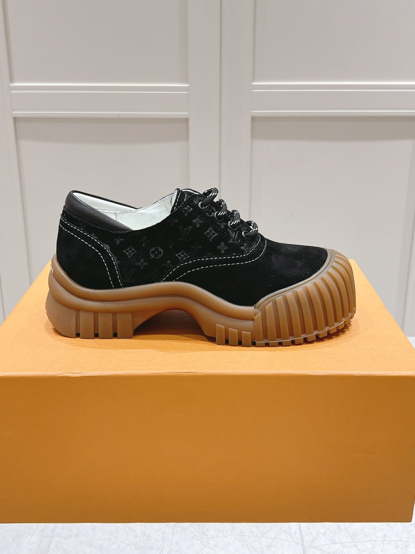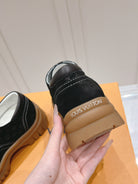 LV Ruby Flat Derby Sneaker Black Embossed Suede 480788