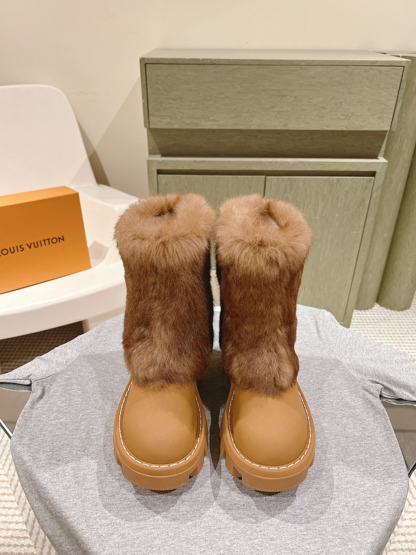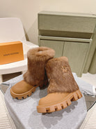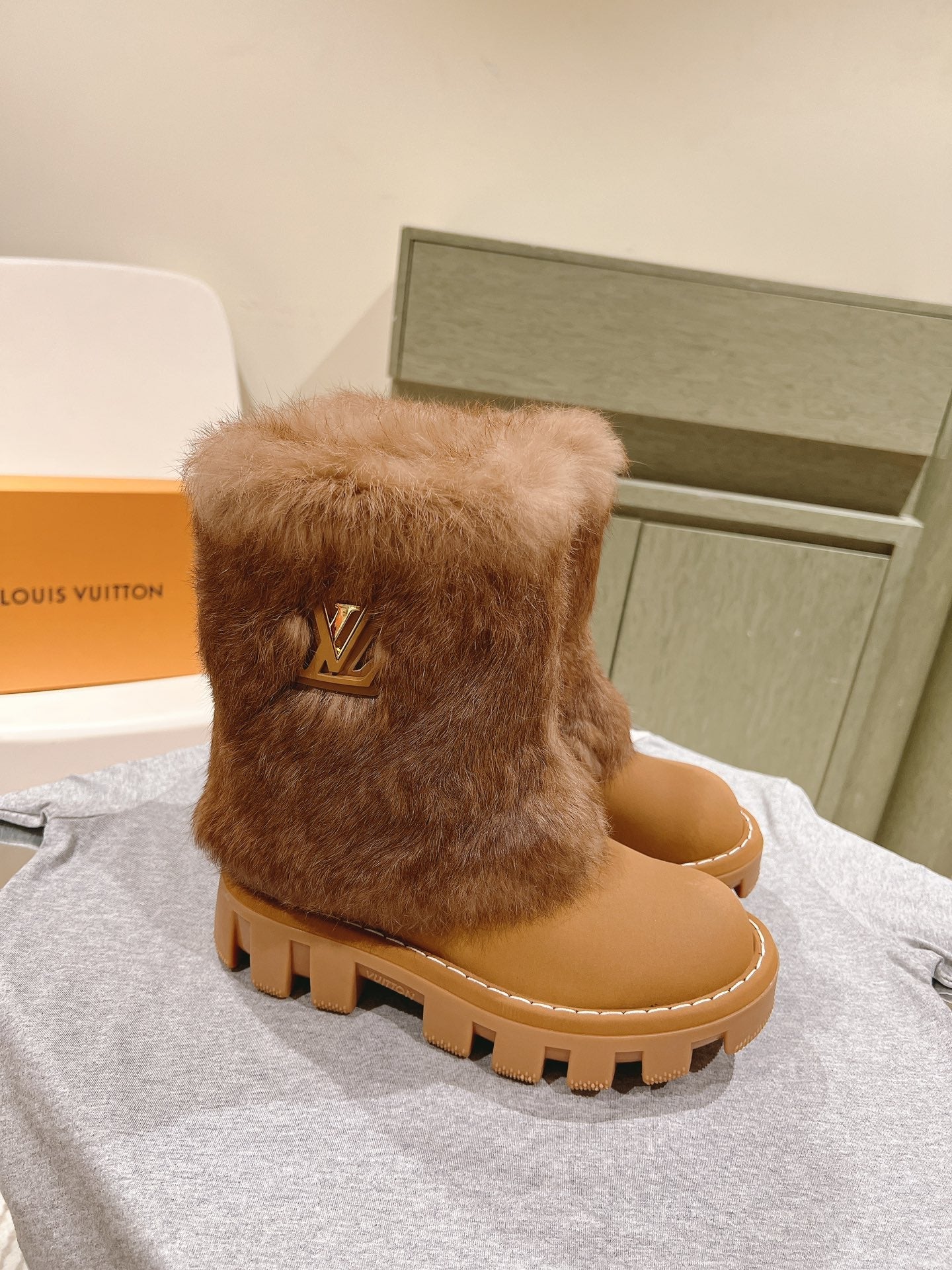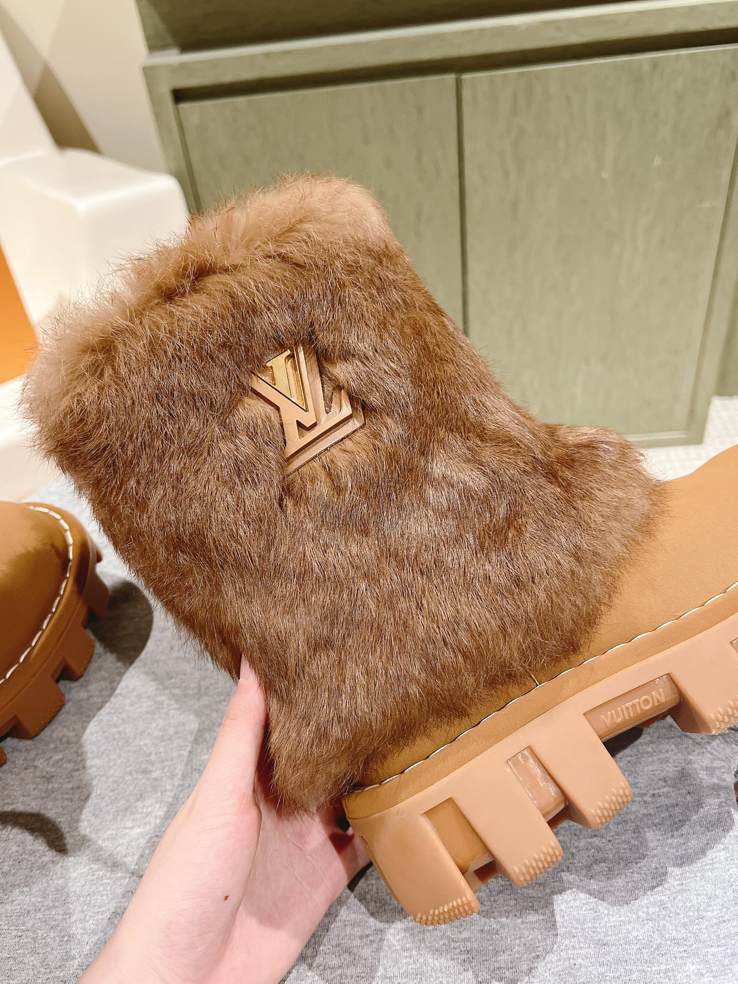 LV Ski Snowdrop Flat Ankle Boots Brown Fur Leather 449935