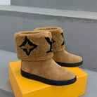 LV Snowdrop Flat Ankle Boot Brown Monogram Black Suede