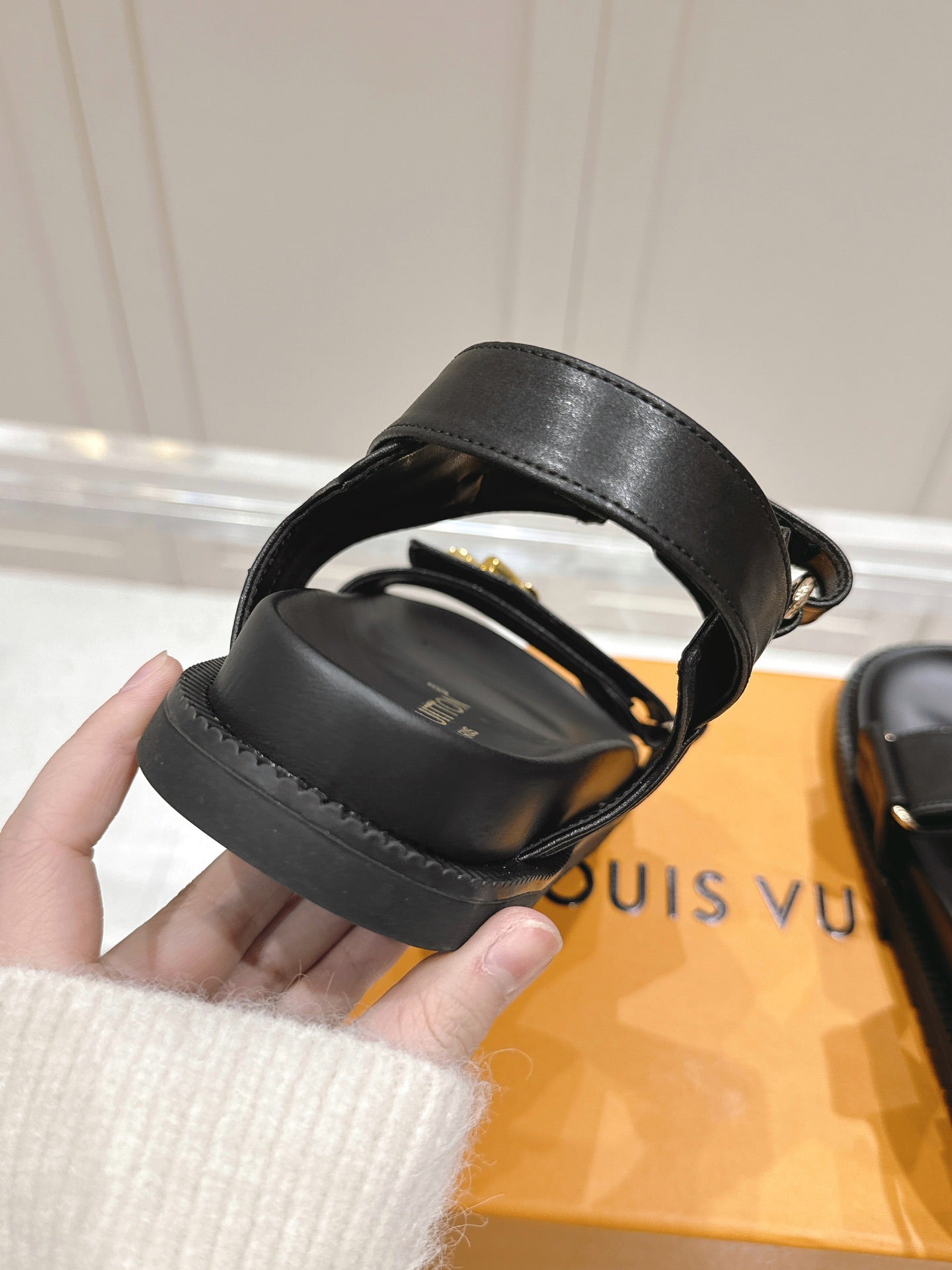 LV Sunset Flat Comfort Sandal Black Calfskin 480783