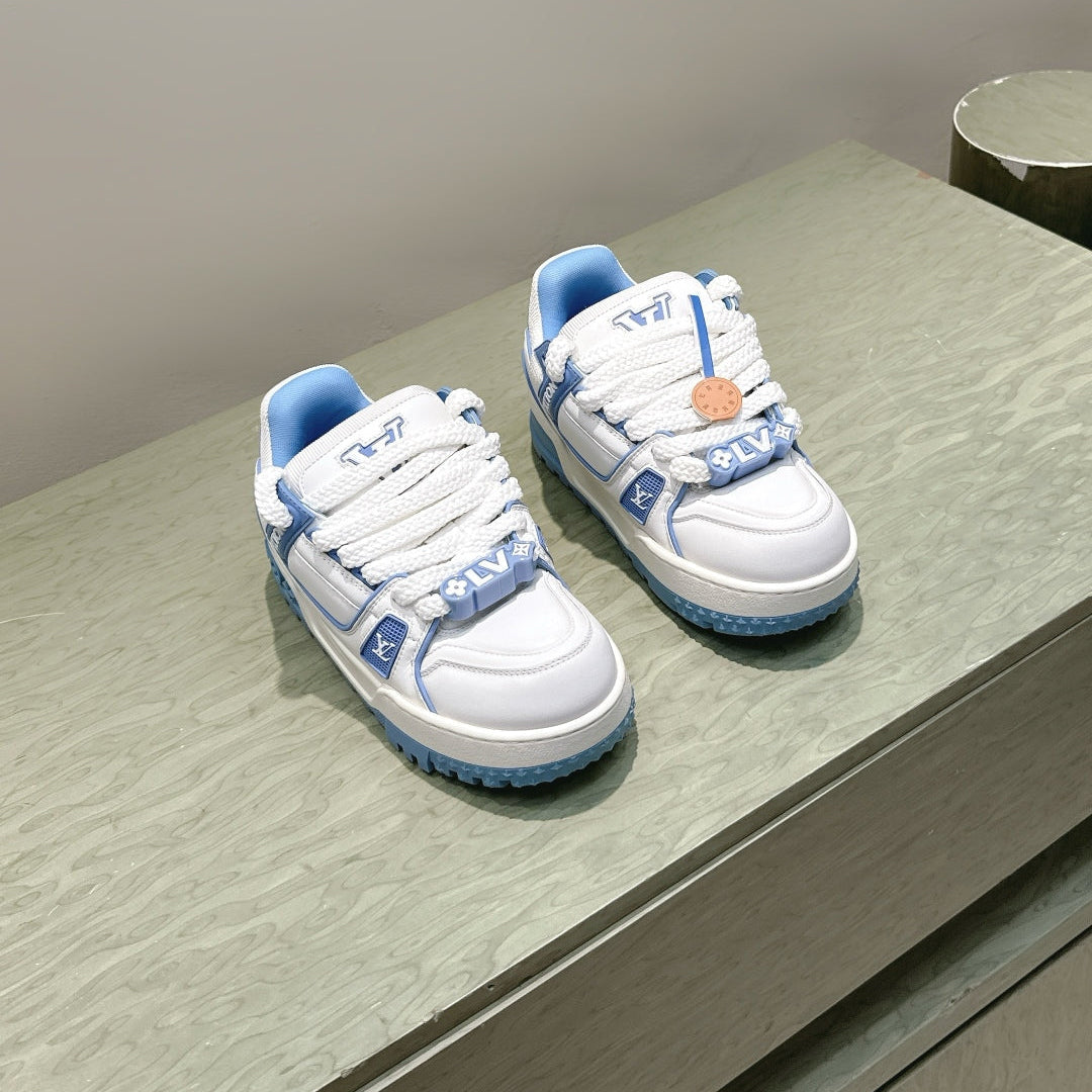 LV Trainer Maxi Sneakers White and Blue Calfskin Mesh 515200