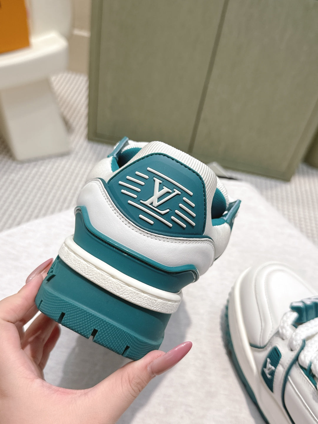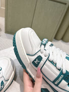 LV Trainer Maxi Sneakers White and Teal Calfskin Mesh 515199