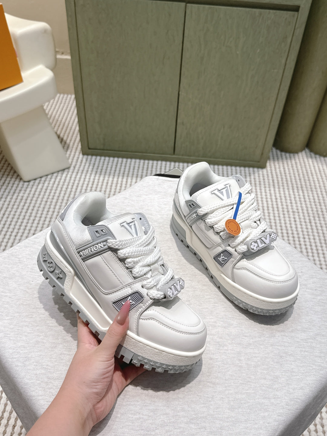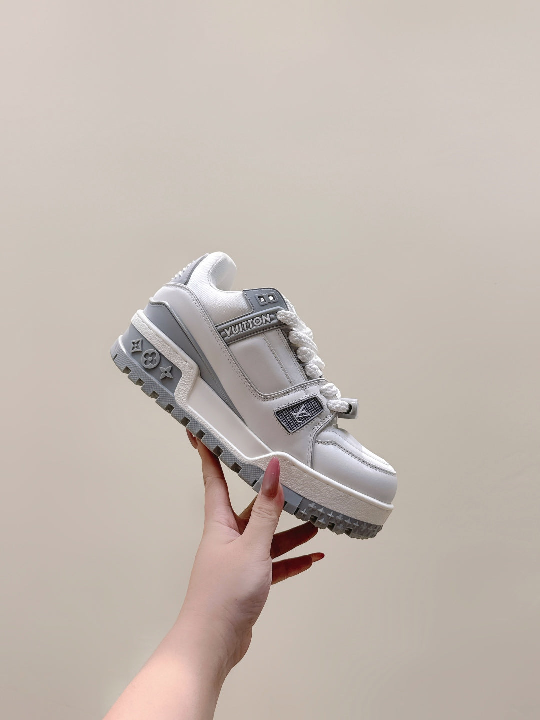 LV Trainer Maxi Sneakers White mix Gray Calf Leather 515190