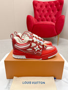 LV Trainer Sneaker Red White Cowhide and Mesh 528556