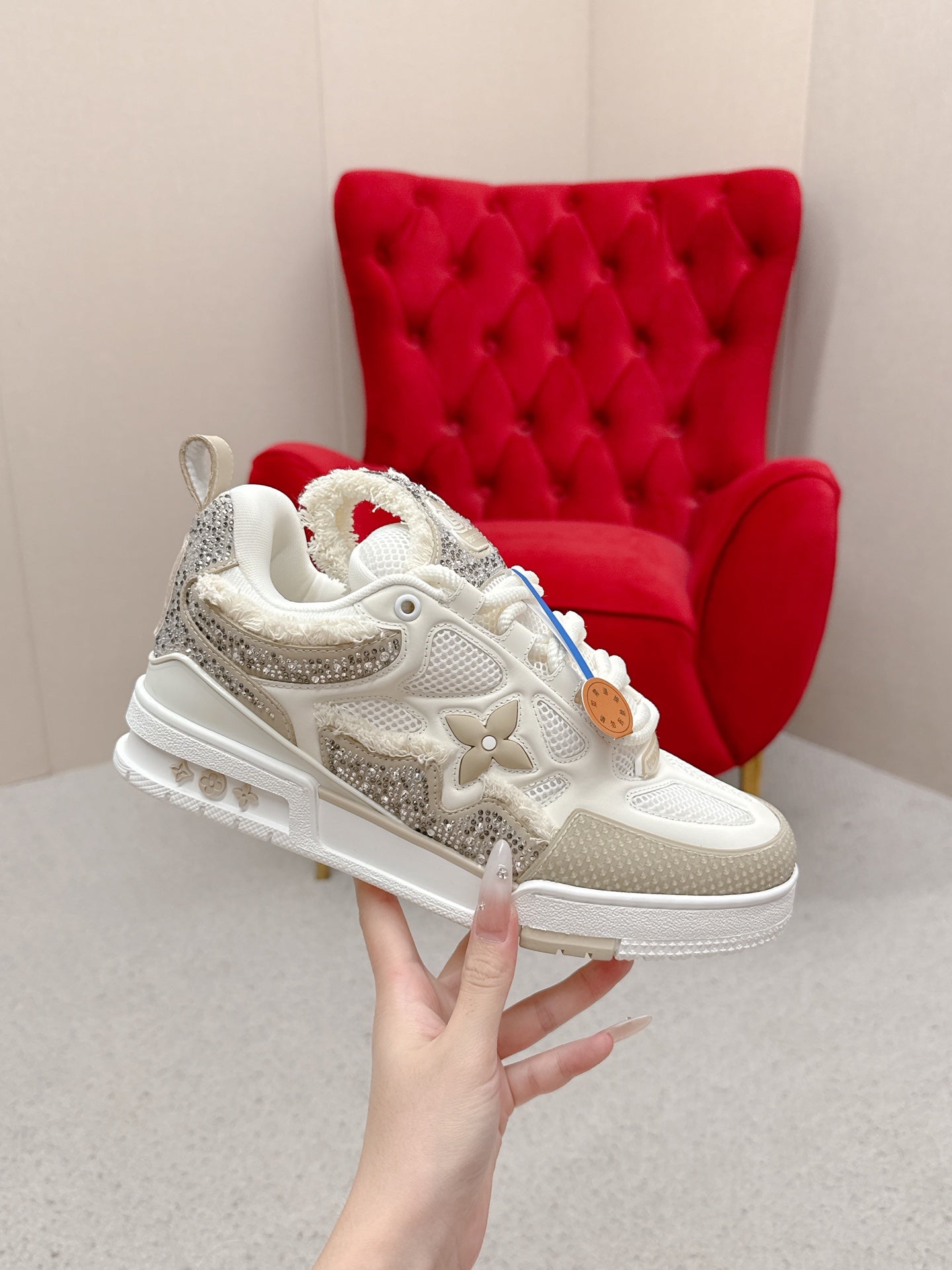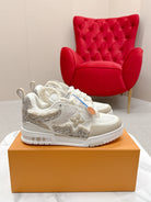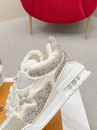 LV Trainer Sneaker White Beige Metallic Grained Metallic Calf Leather 528549