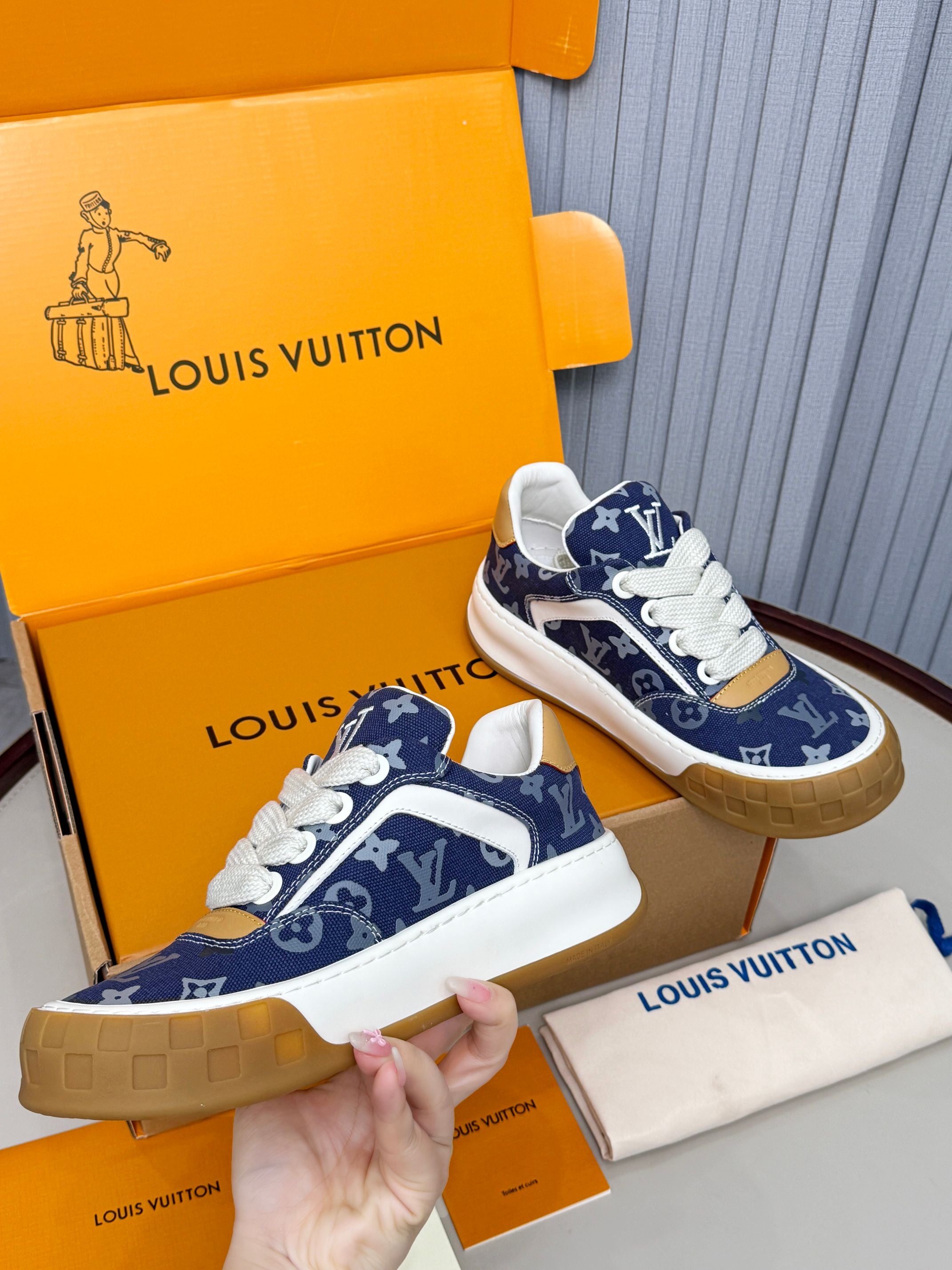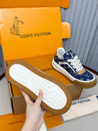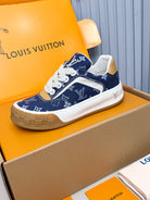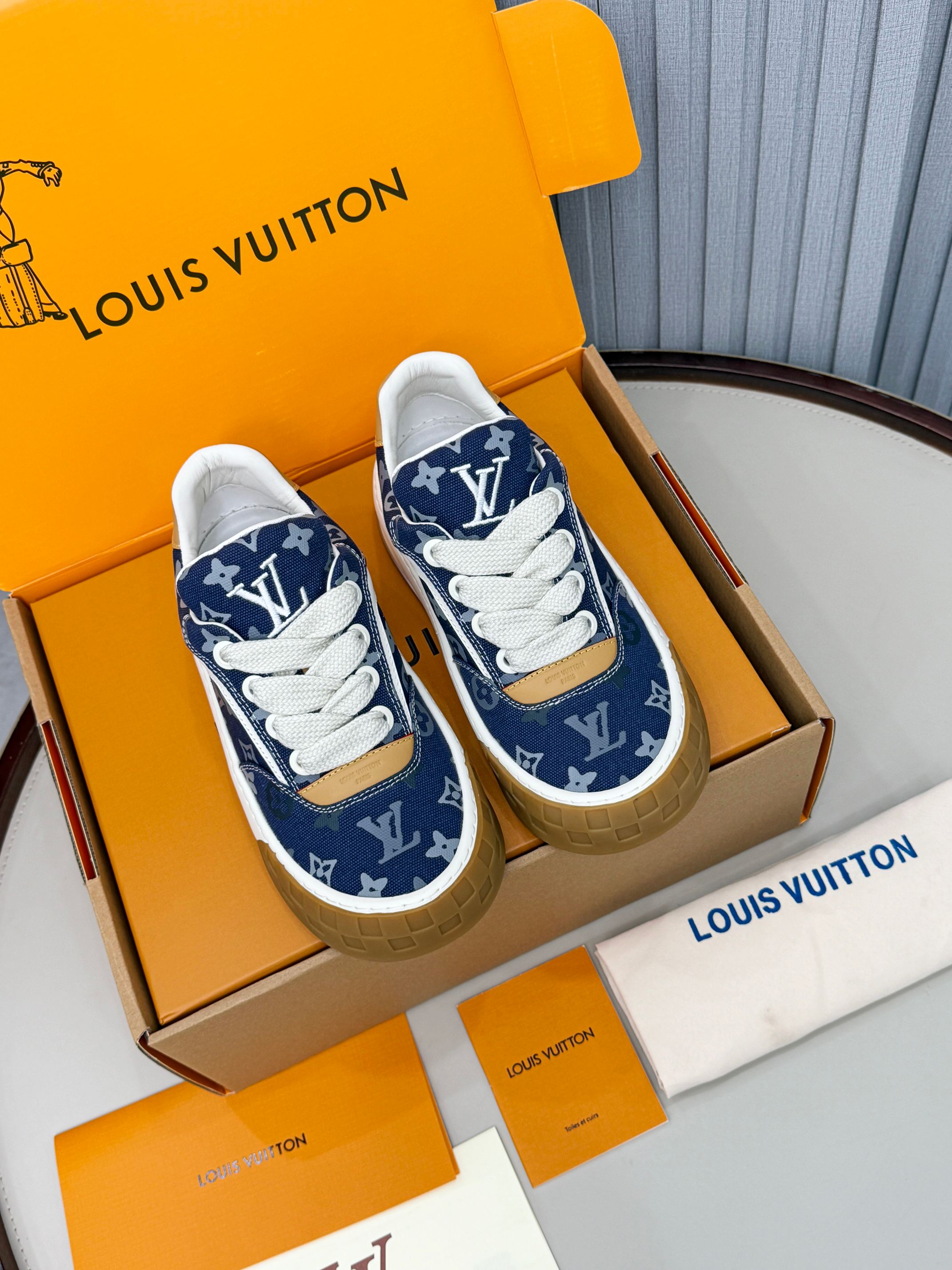 LV Trainer Tilted Sneakers Blue Denim Monogram Canvas 632610