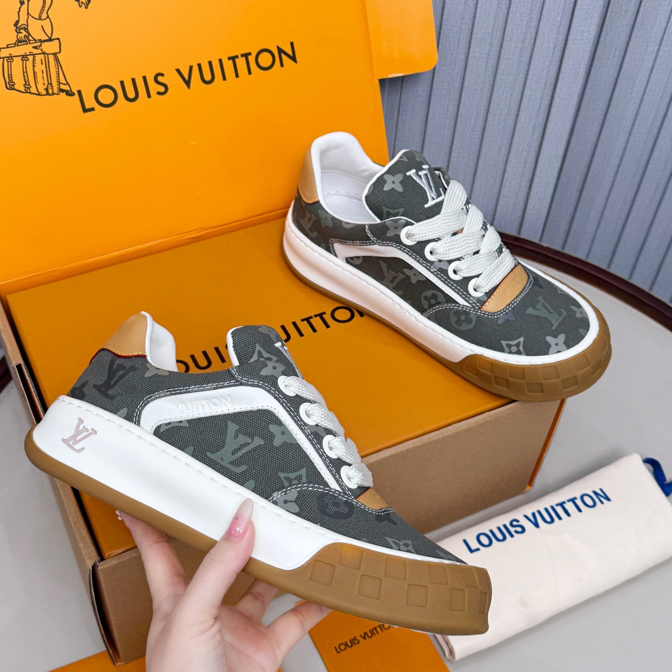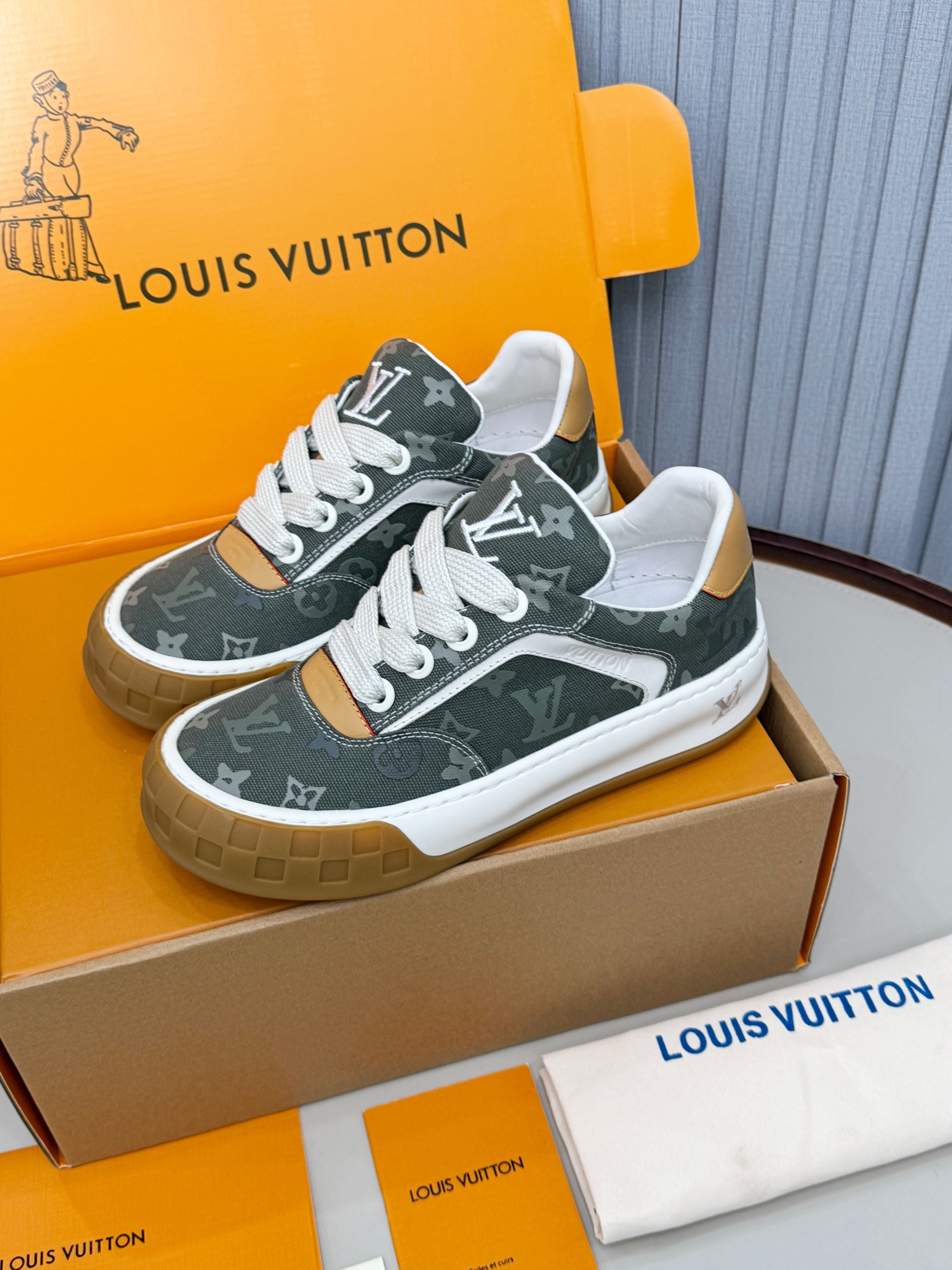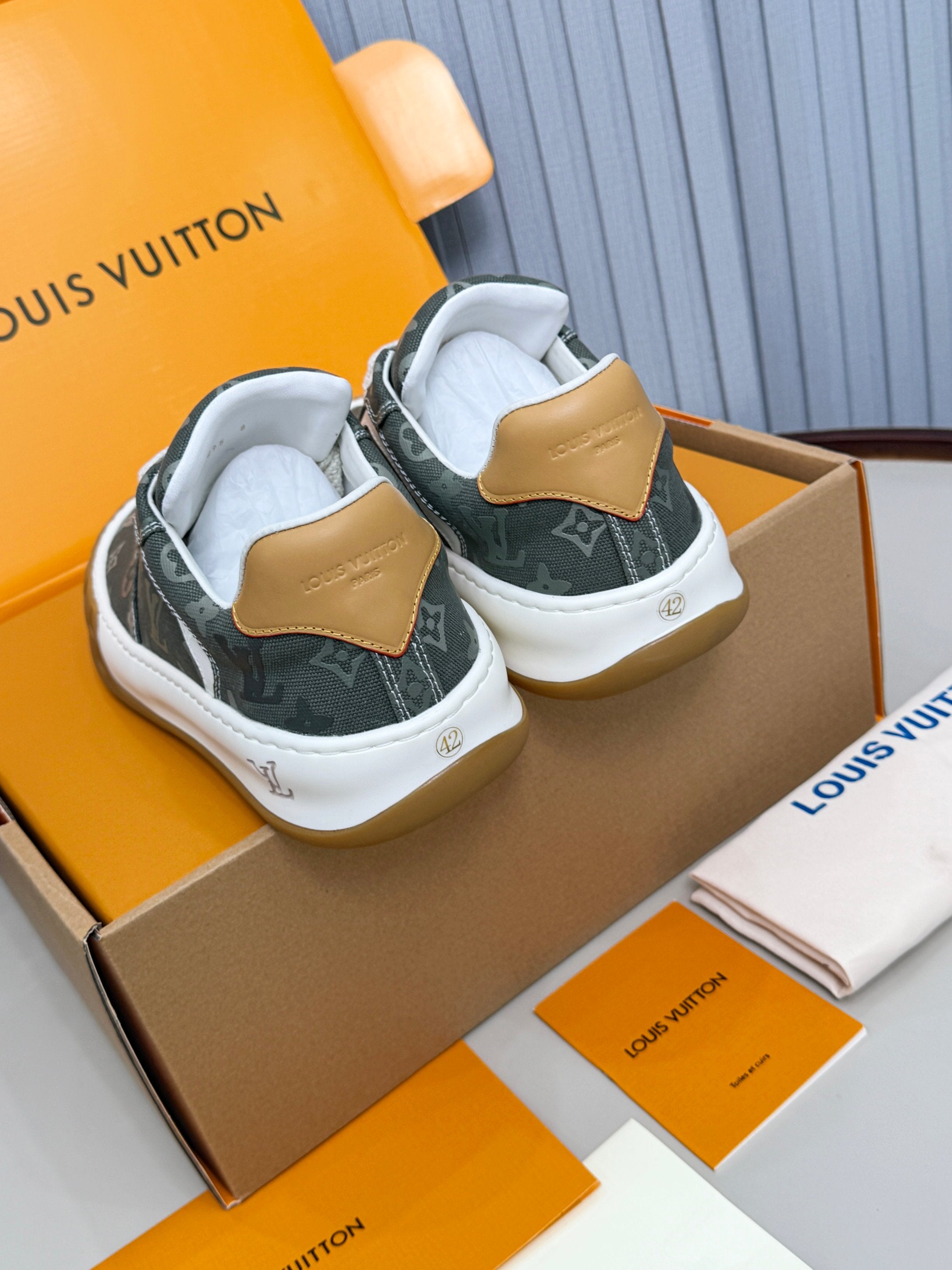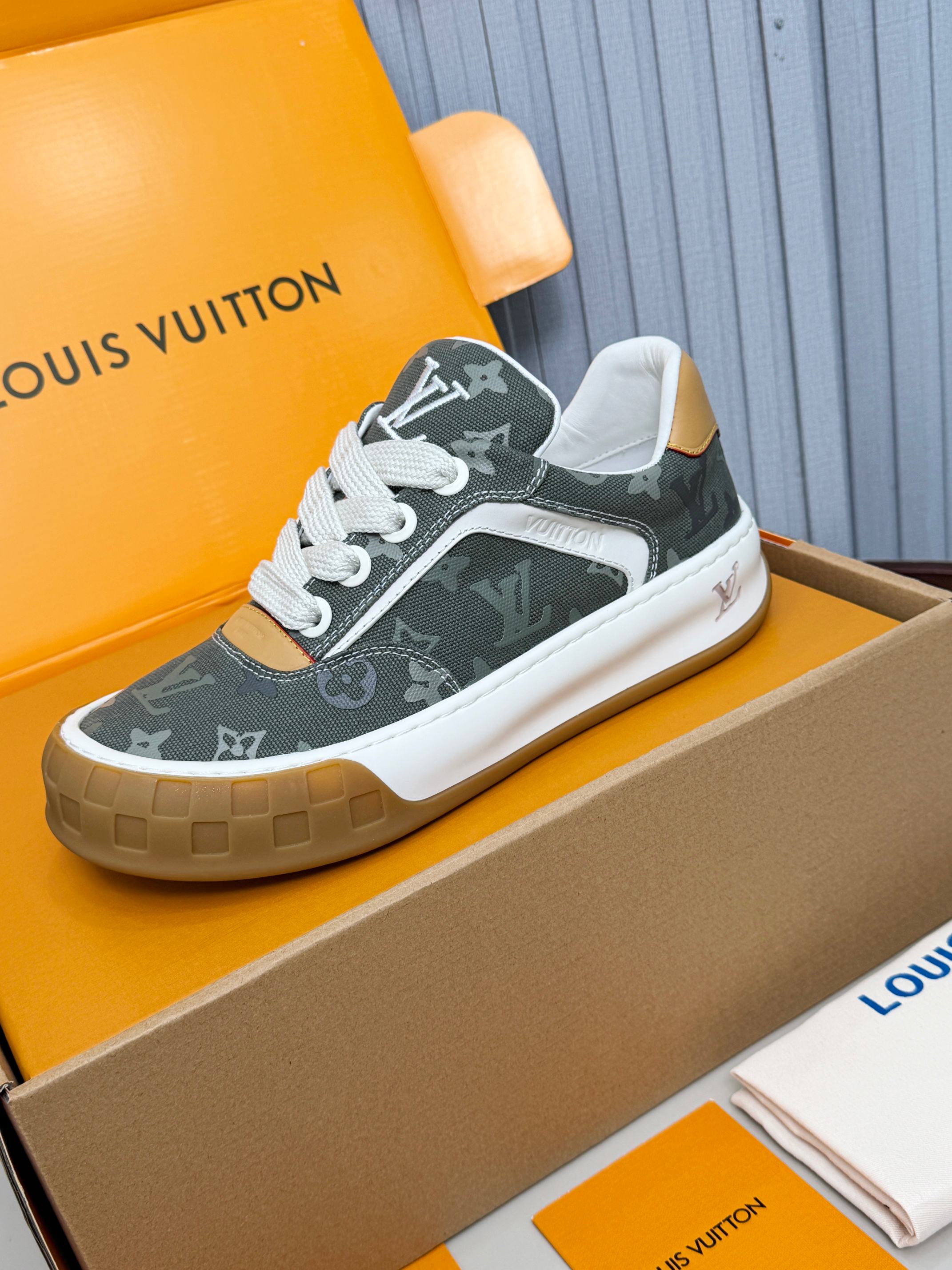 LV Trainer Tilted Sneakers Khaki Green Monogram Canvas 632611