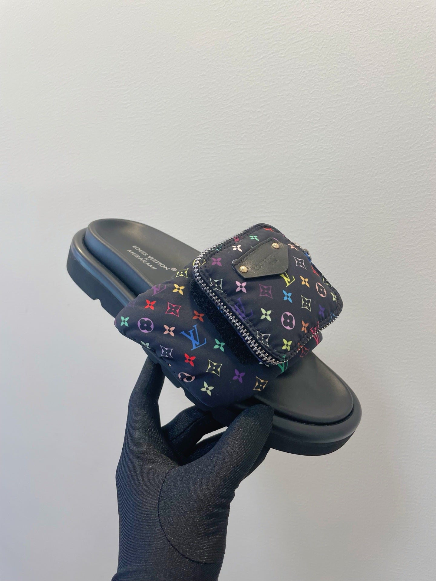 LV x TM Pool Pillow Flat Comfort Mule Black and Multicolored Monogram Nylon 241327