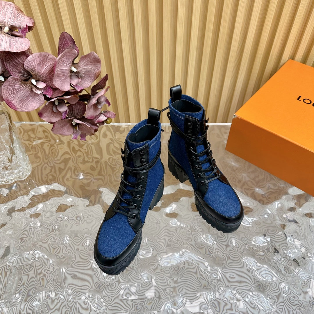 LV Laureate Platform Desert Boot 70mm Dark Blue Denim Fabric