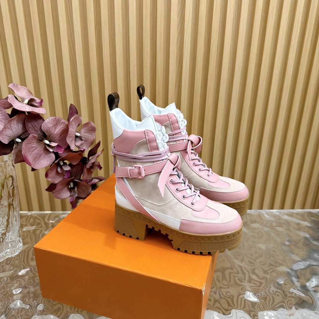 LV Laureate Platform Desert Boot 70mm Pink Mix Beige Suede