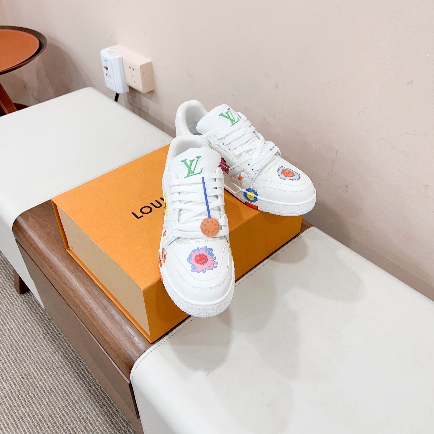 LV YK Trainer Sneakers White Print Cowhide 492958