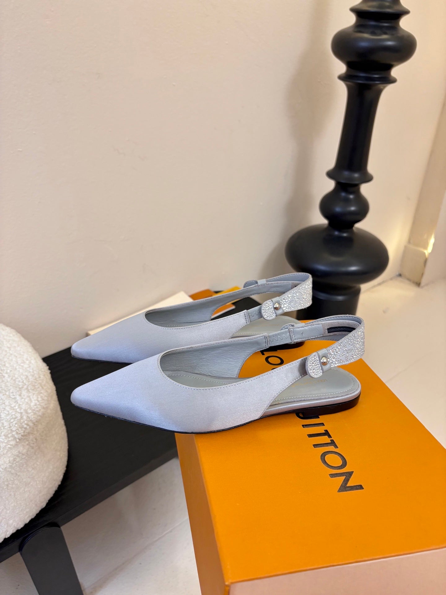 LV Legacy Slingback Flat Light Grey Silk Sheepskin 627248