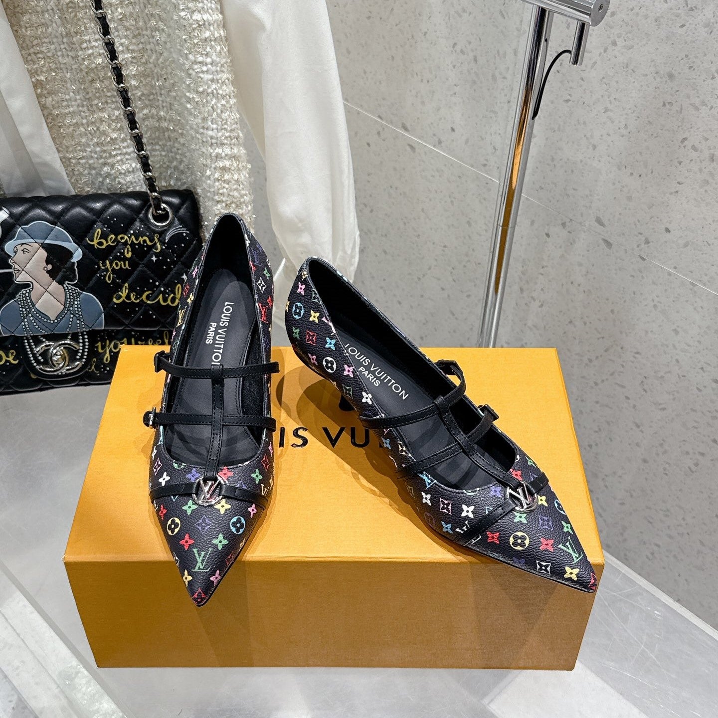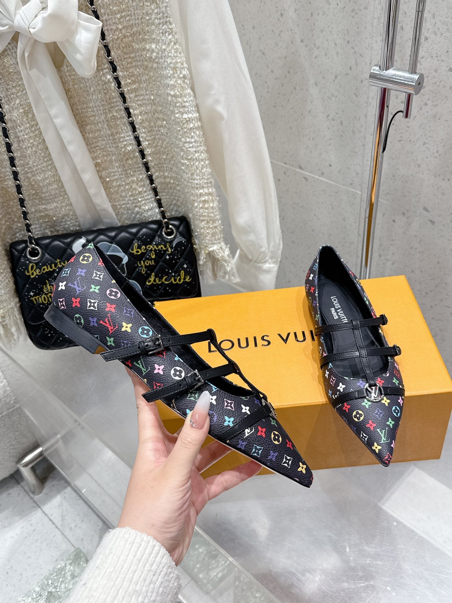 LV 6AM Flat Ballerina Black Monogram Cowhide 610741