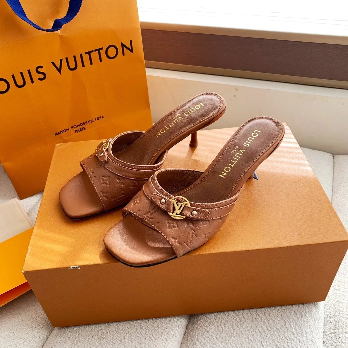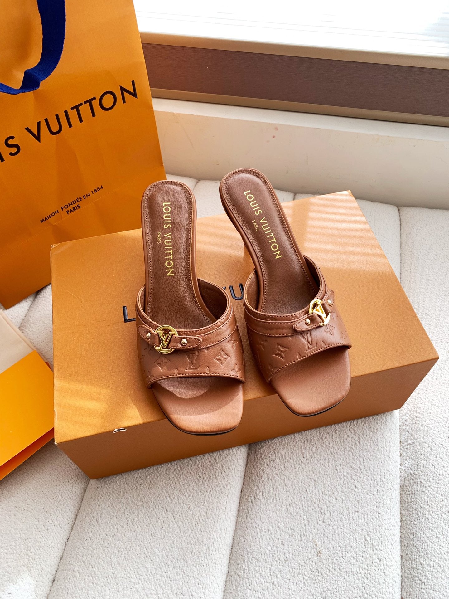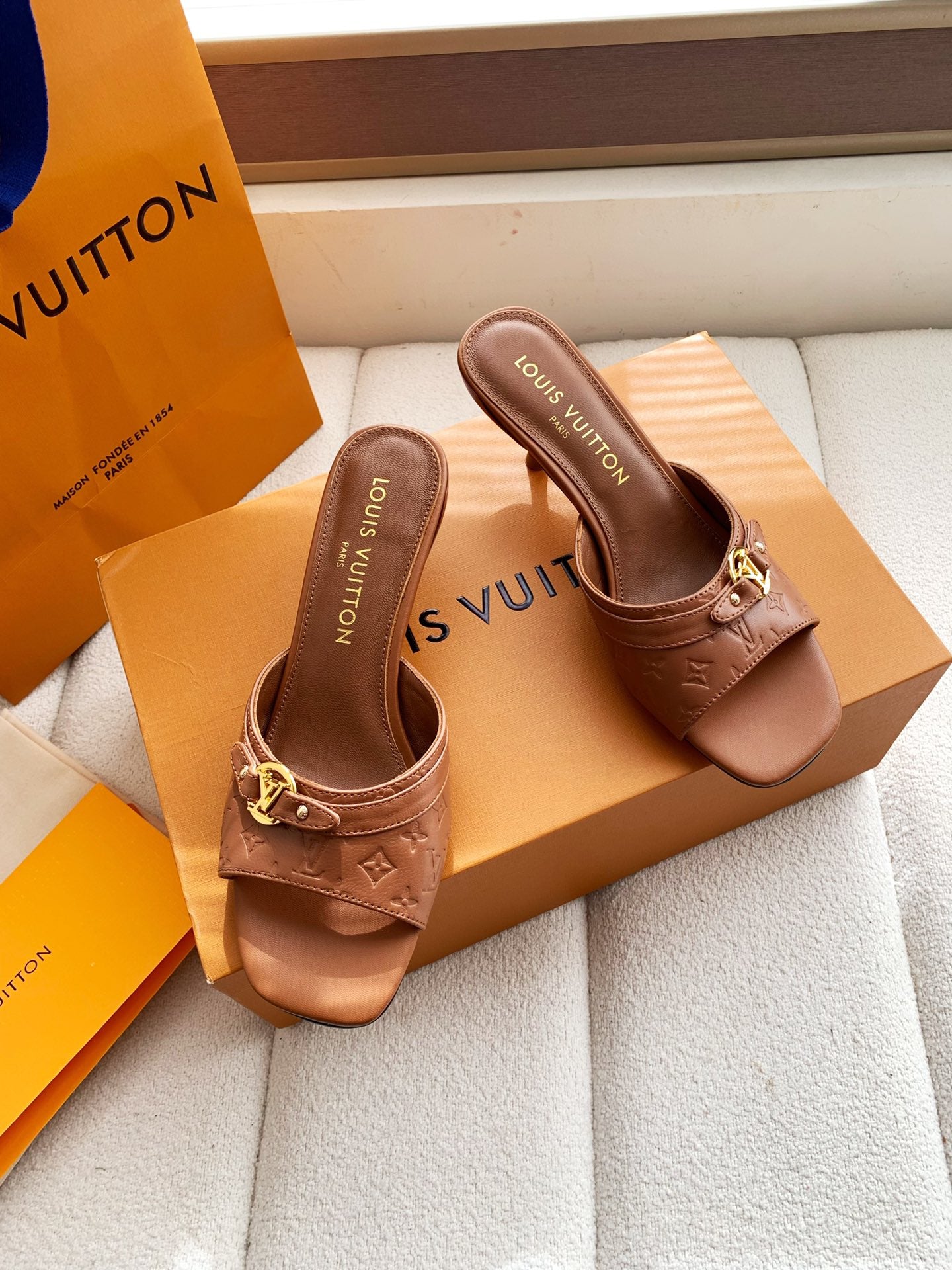 LV 26s High Heels 55 Slippers Brown Sheepskin 614981