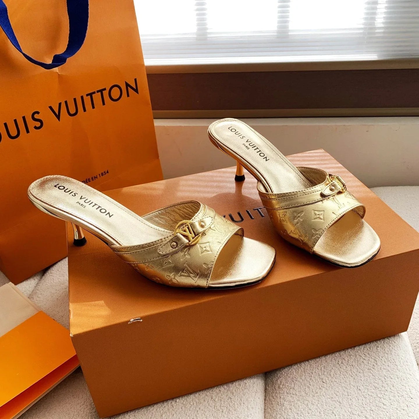 LV 26s High Heels 55 Slippers Gold Metallic Sheepskin 614984