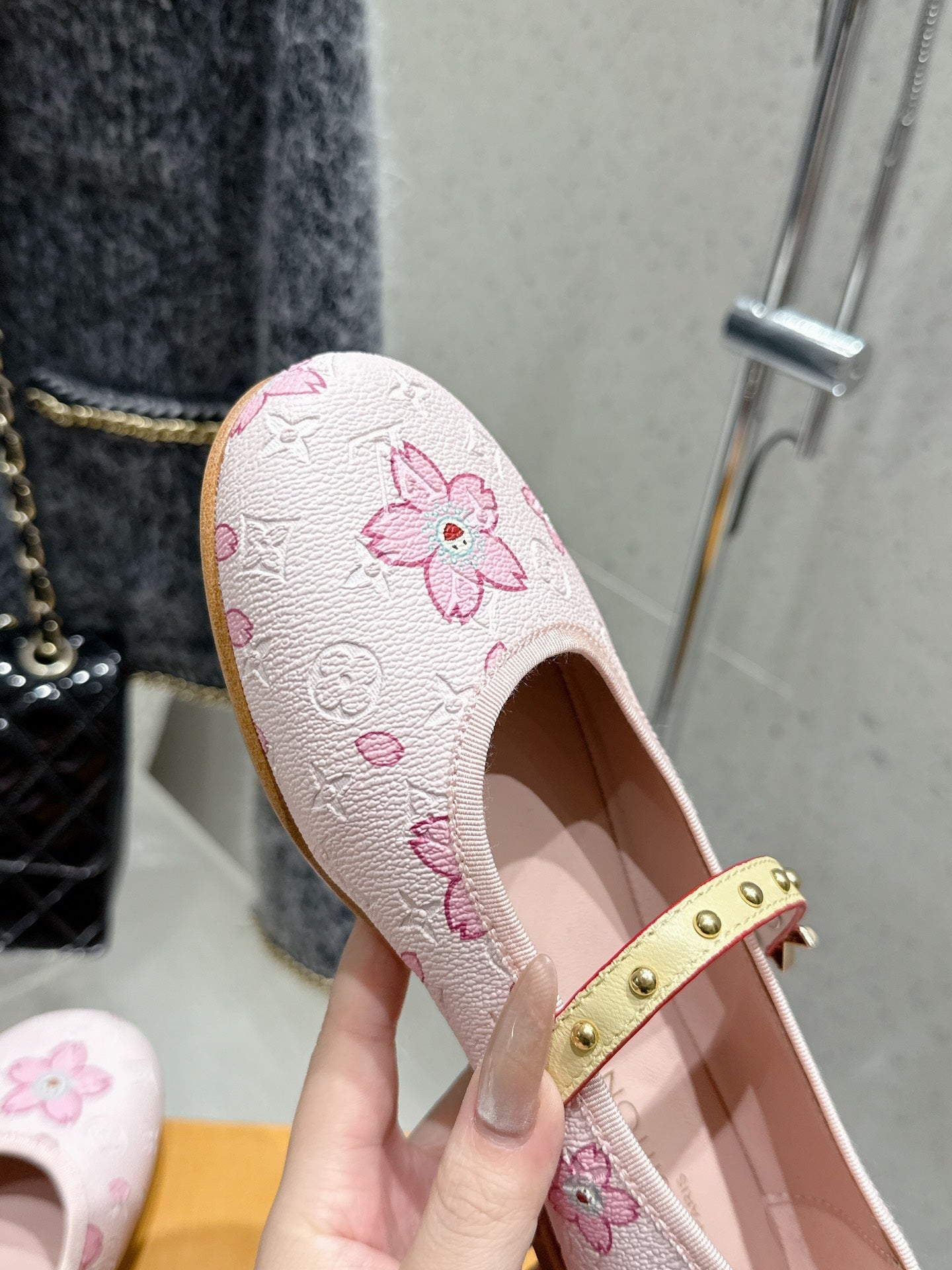 LV 26s Ballet Flats Light Pink Monogram Leather 610840