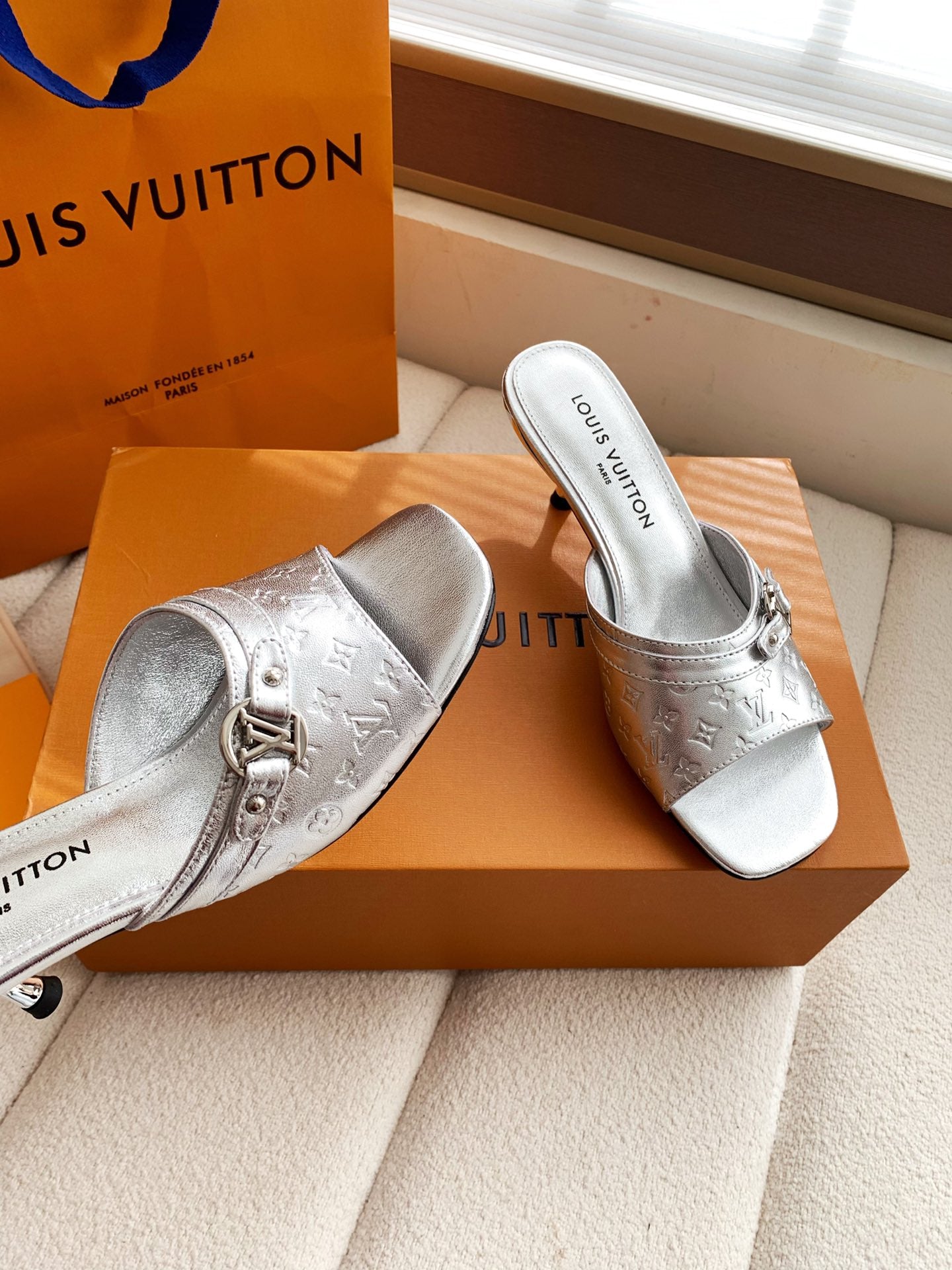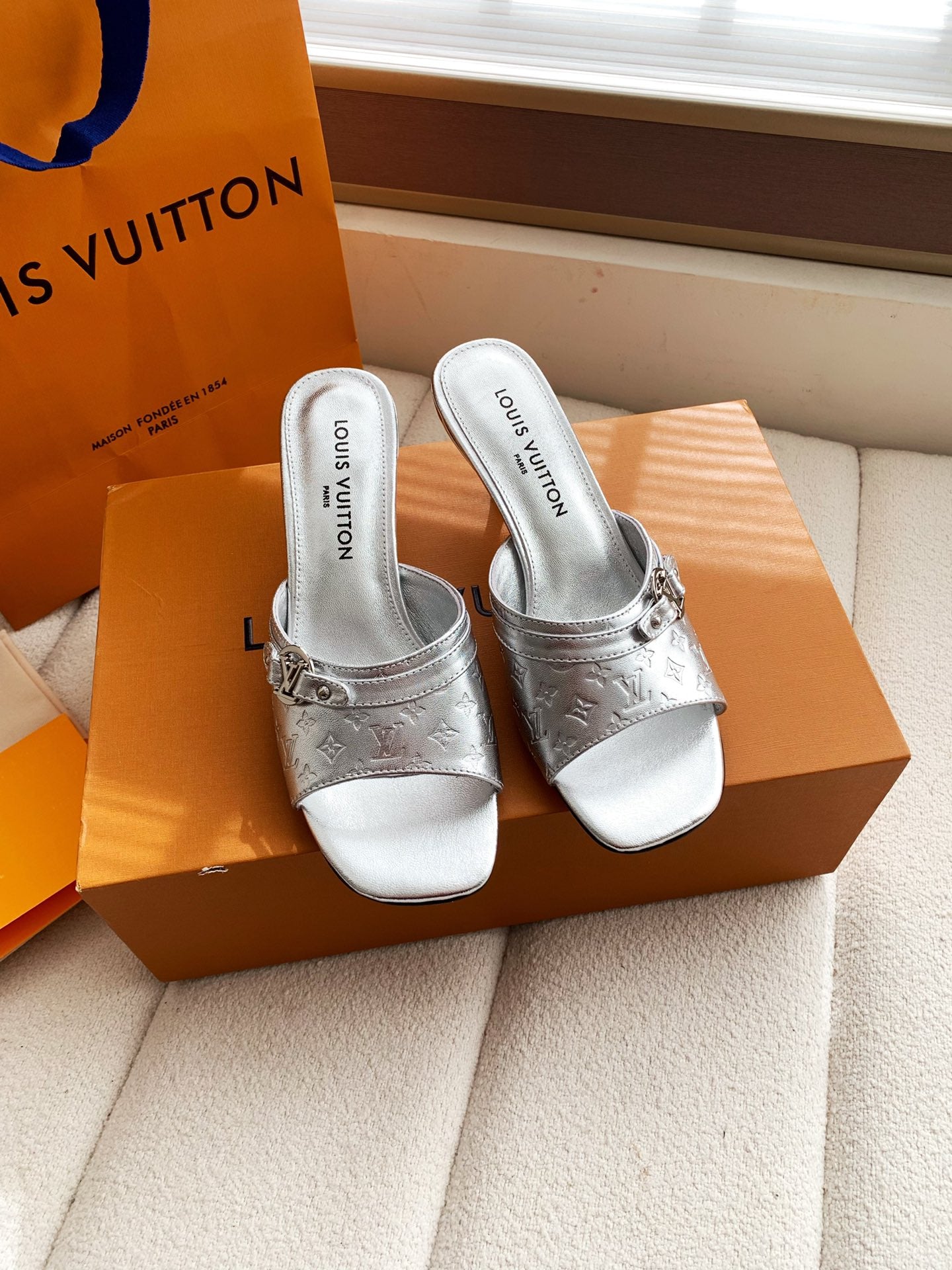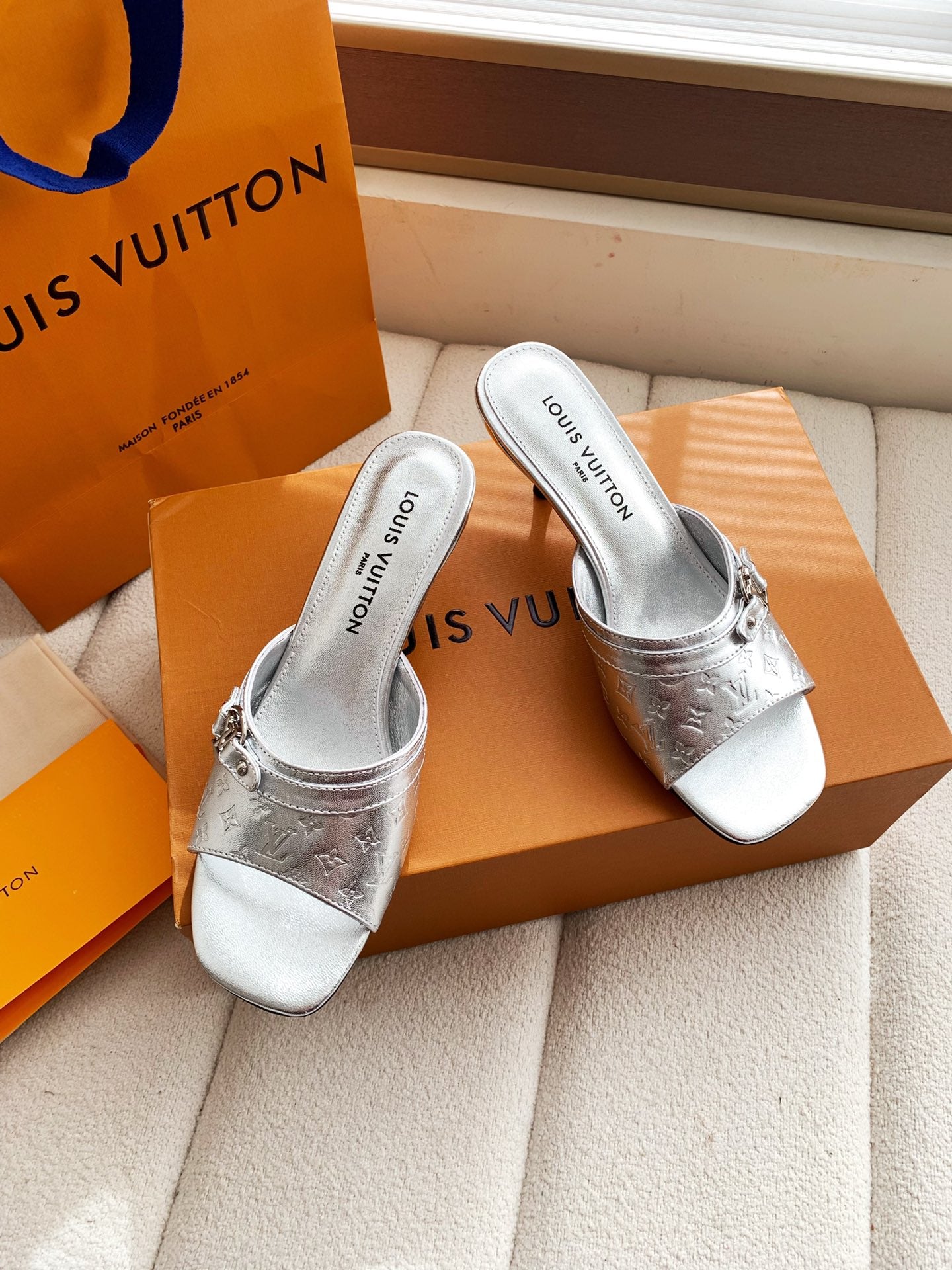 LV 26s High Heels 55 Slippers Sliver Sheepskin 614983