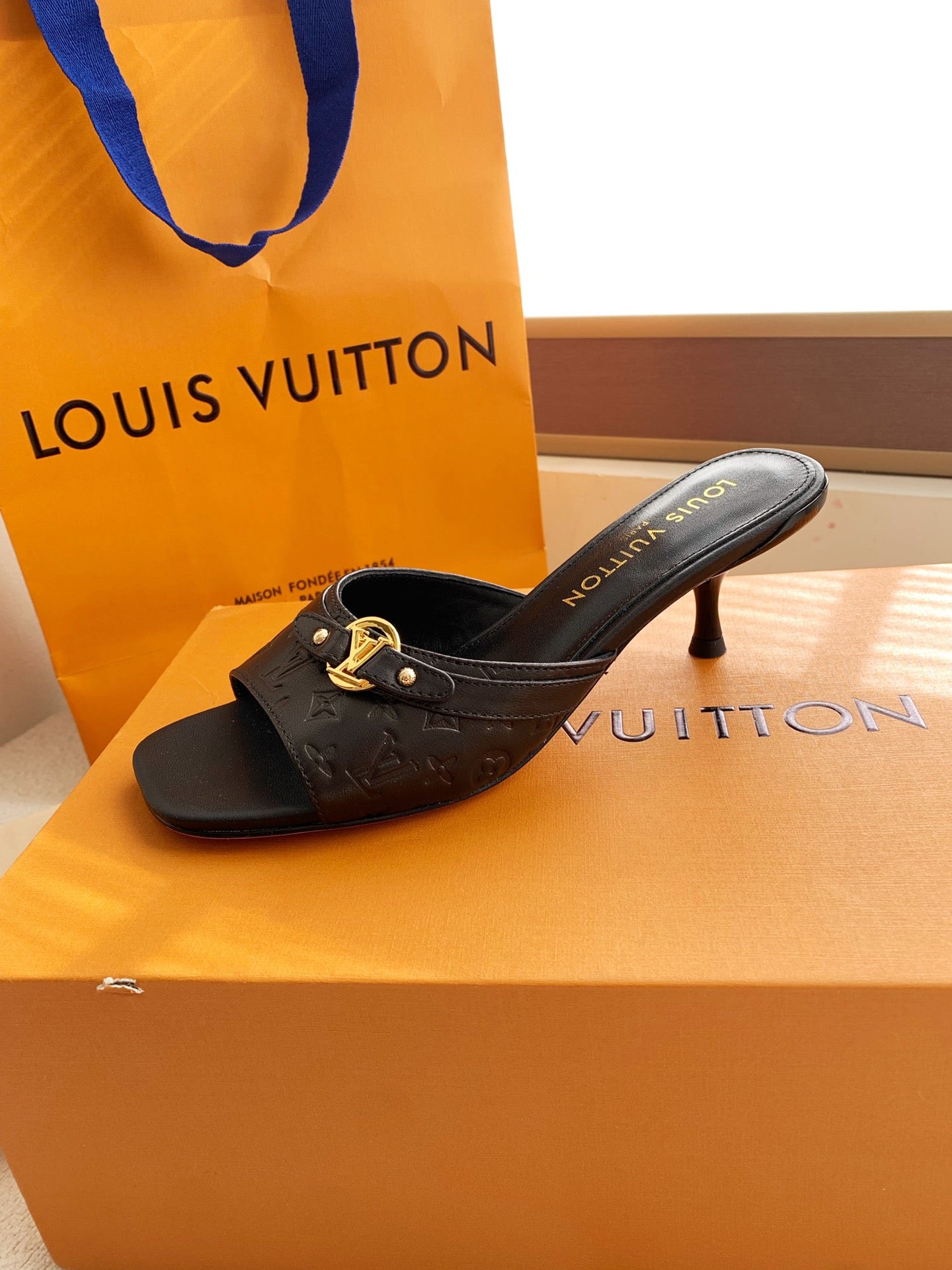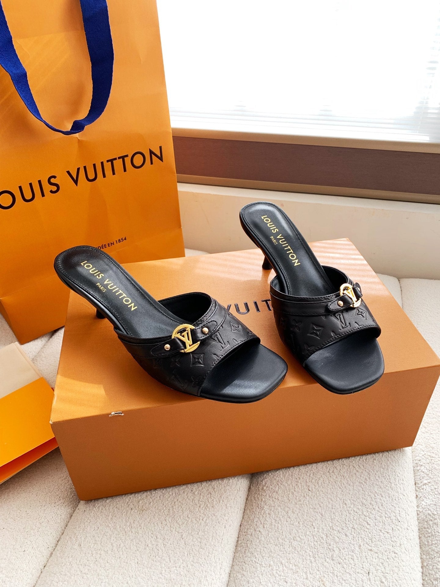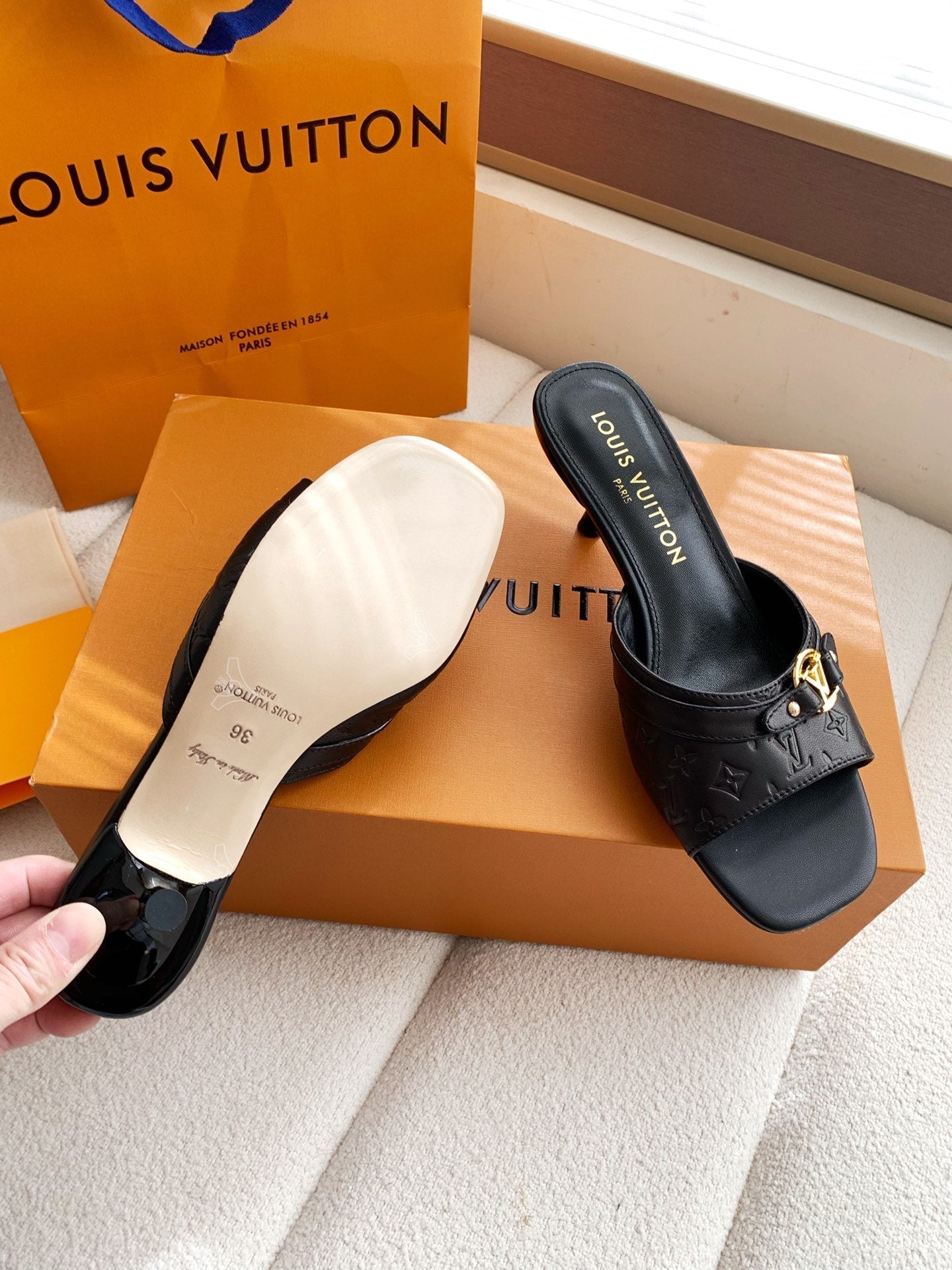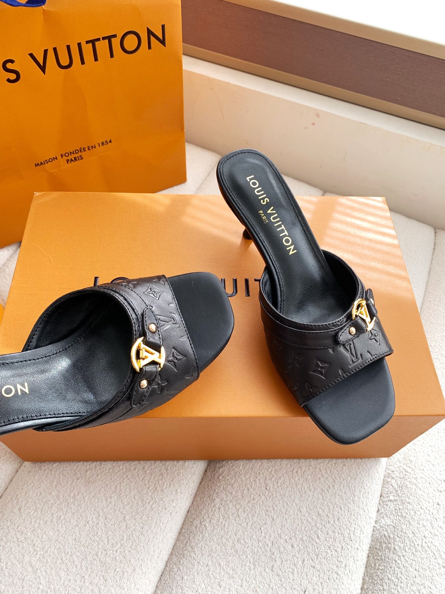 LV 26s High Heels 55 Slippers Black Sheepskin 614980