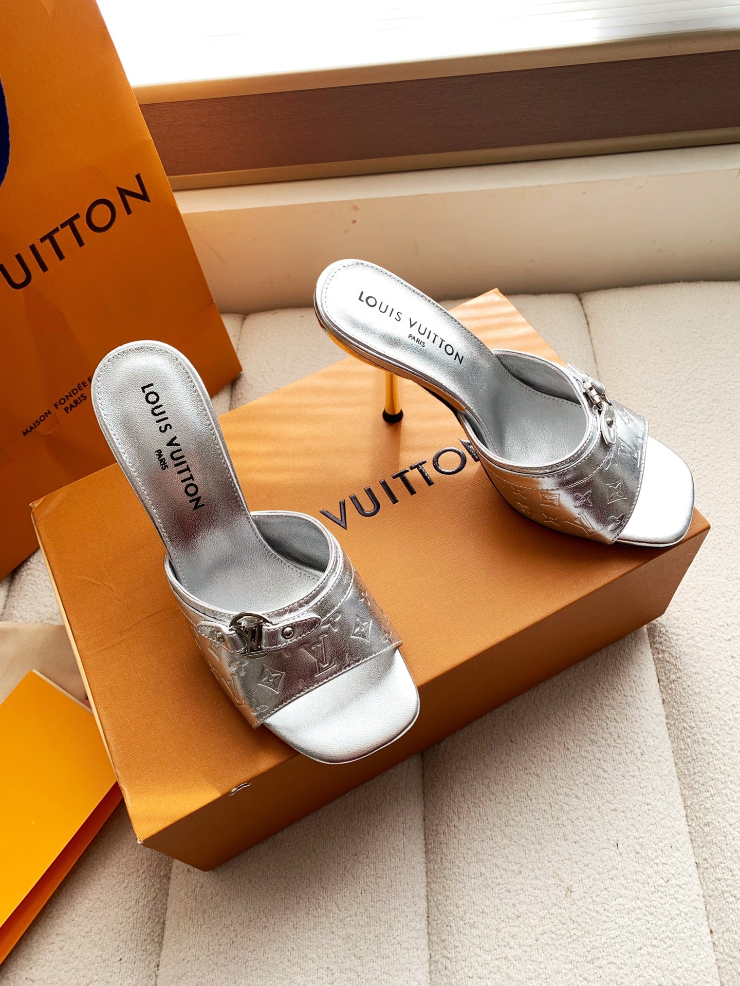 LV 26s High Heels 95 Slippers Sliver Sheepskin 614988