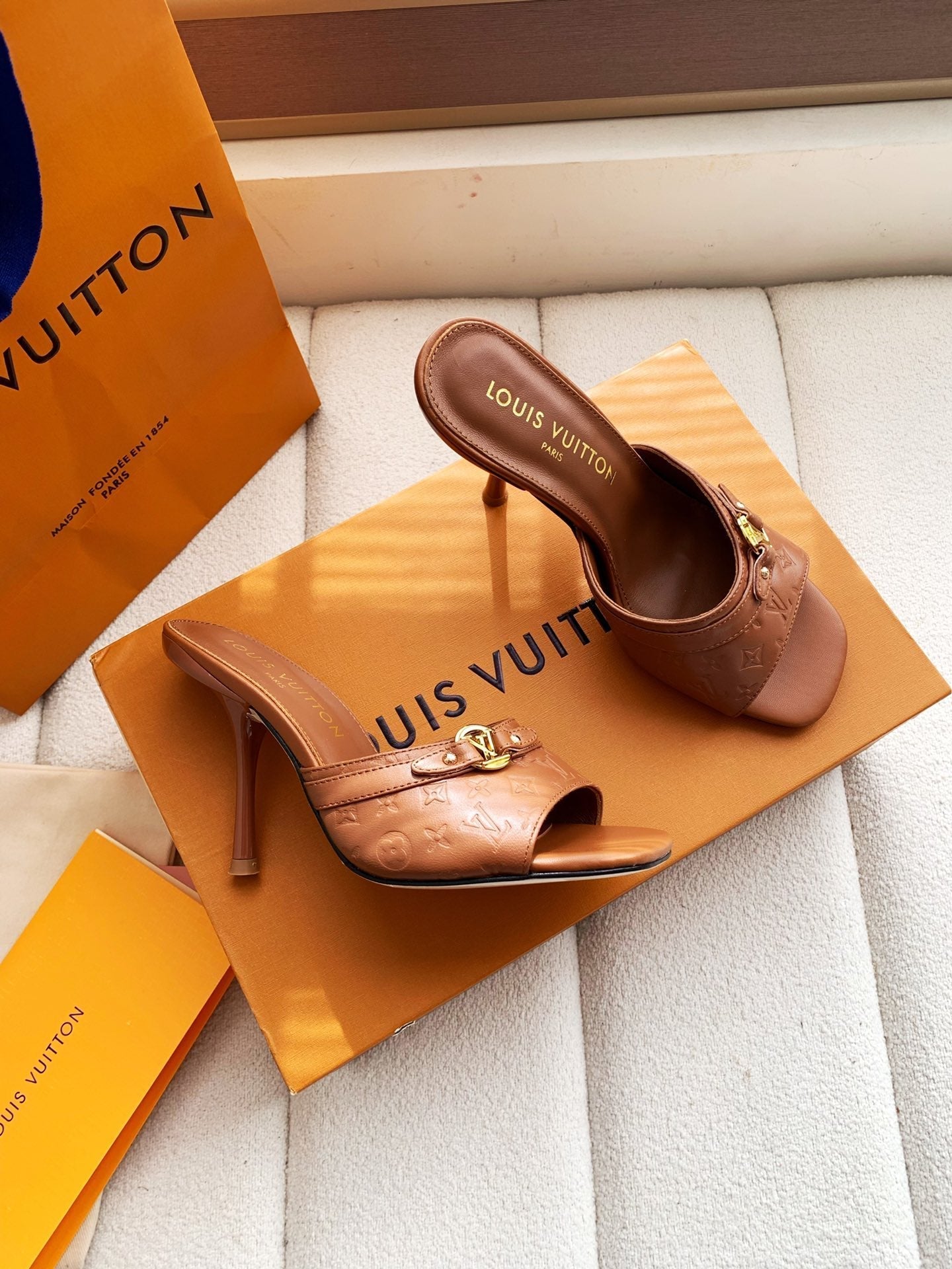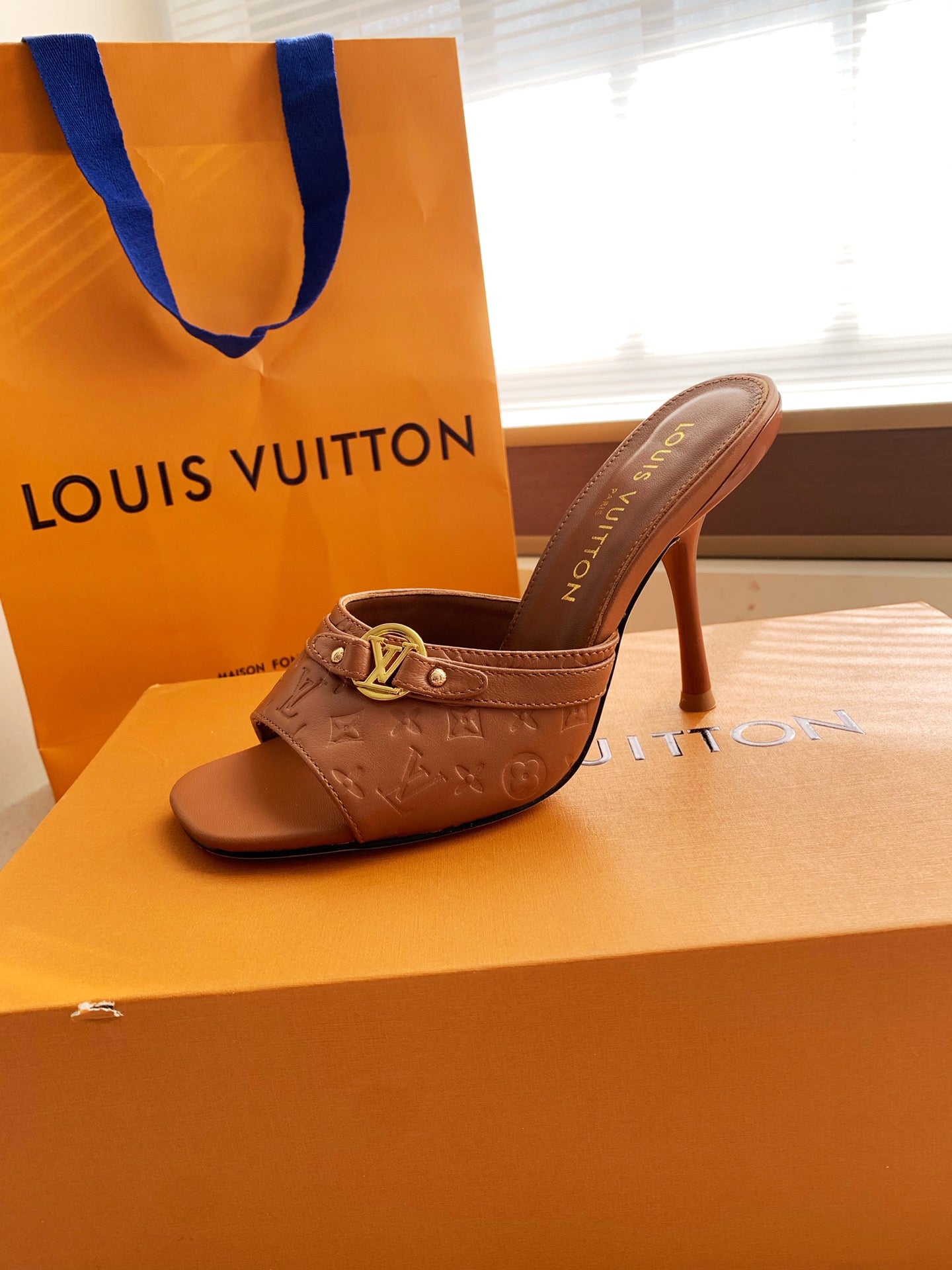 LV 26s High Heels 95 Slippers Brown Sheepskin 614986