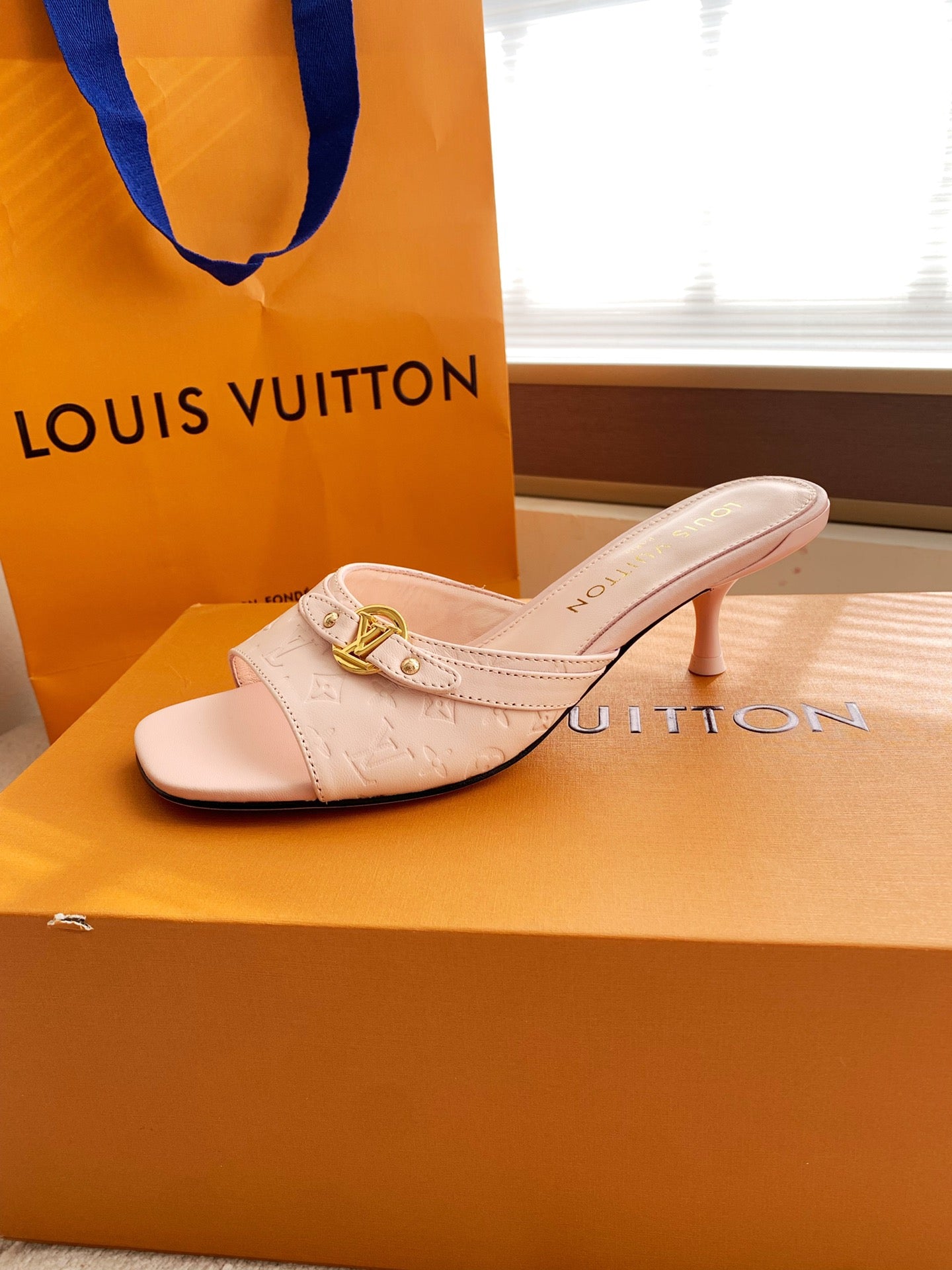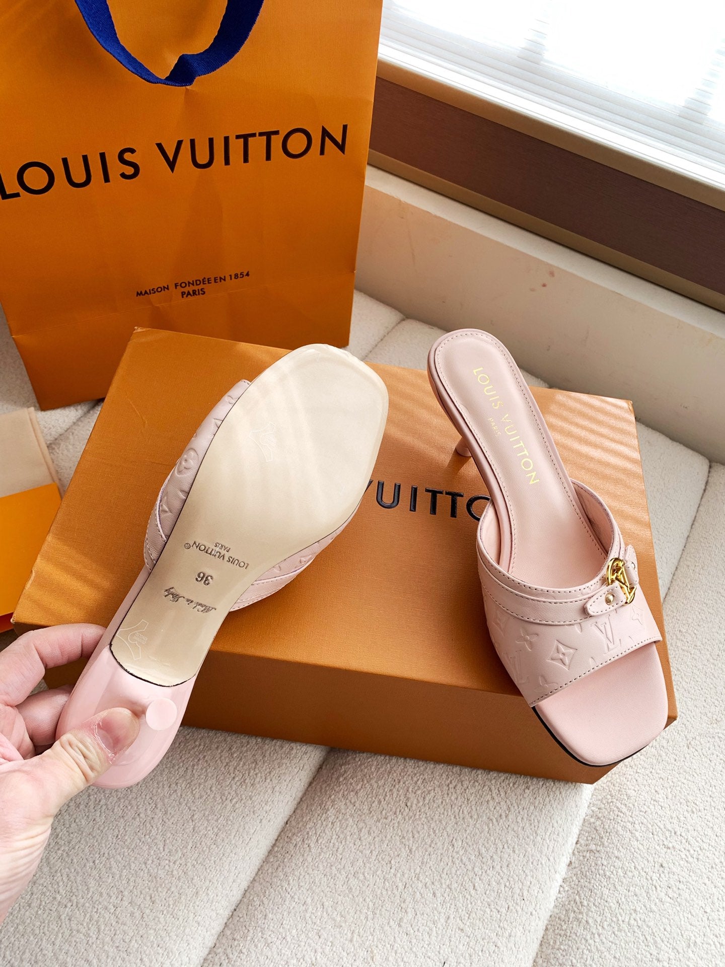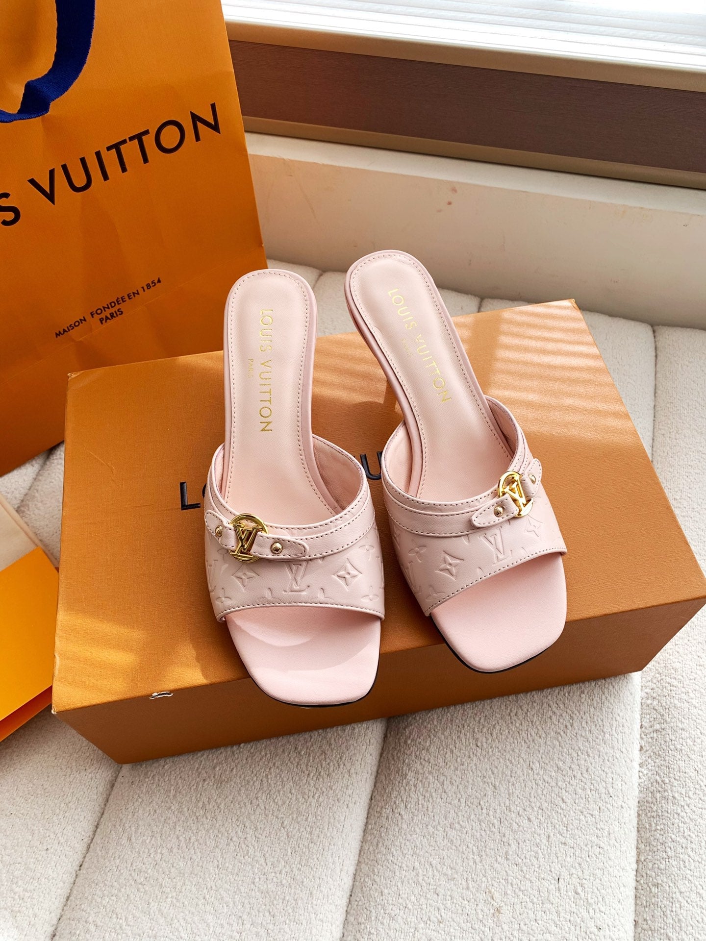 LV 26s High Heels 55 Slippers Light Pink Sheepskin 614982