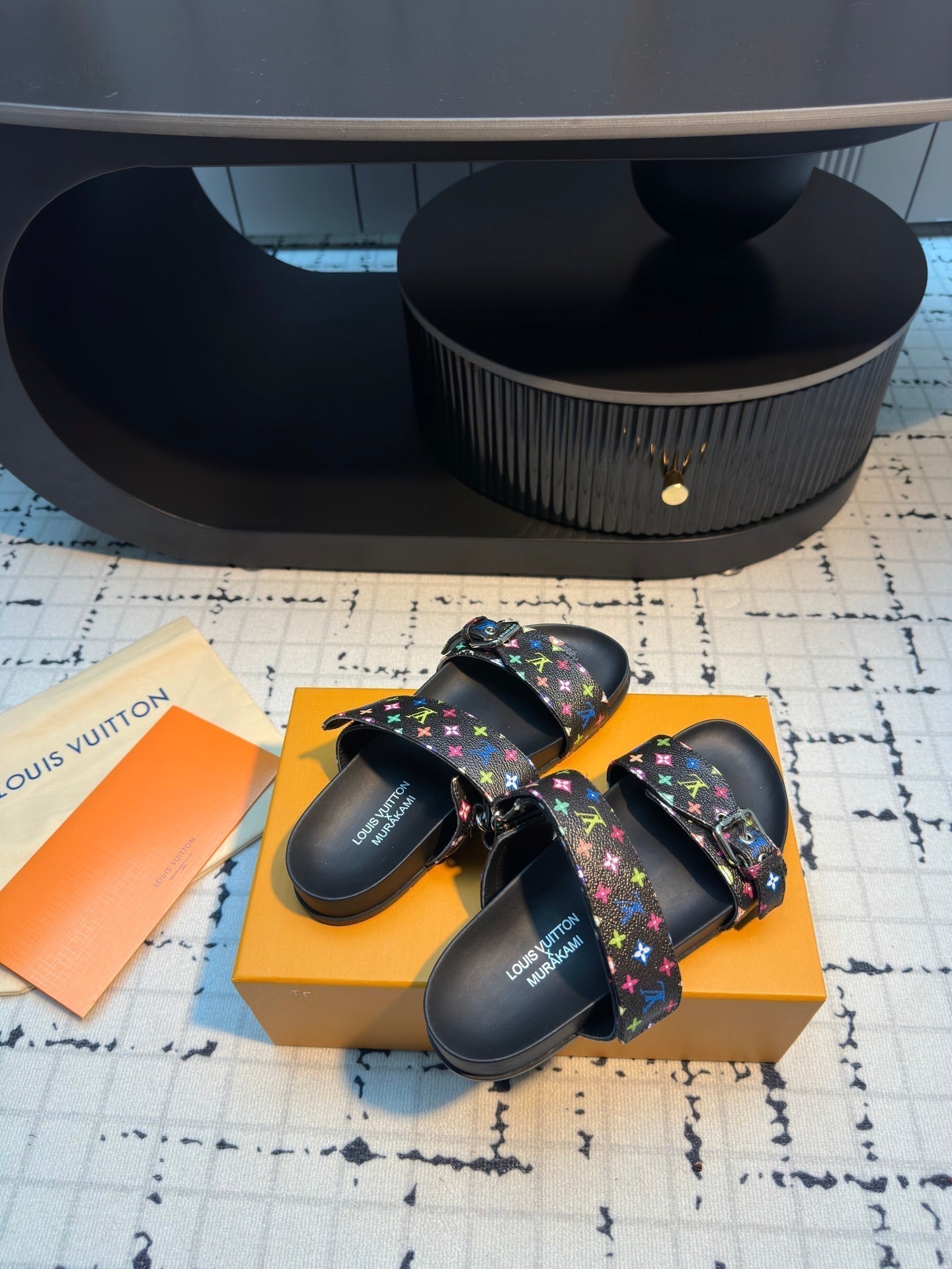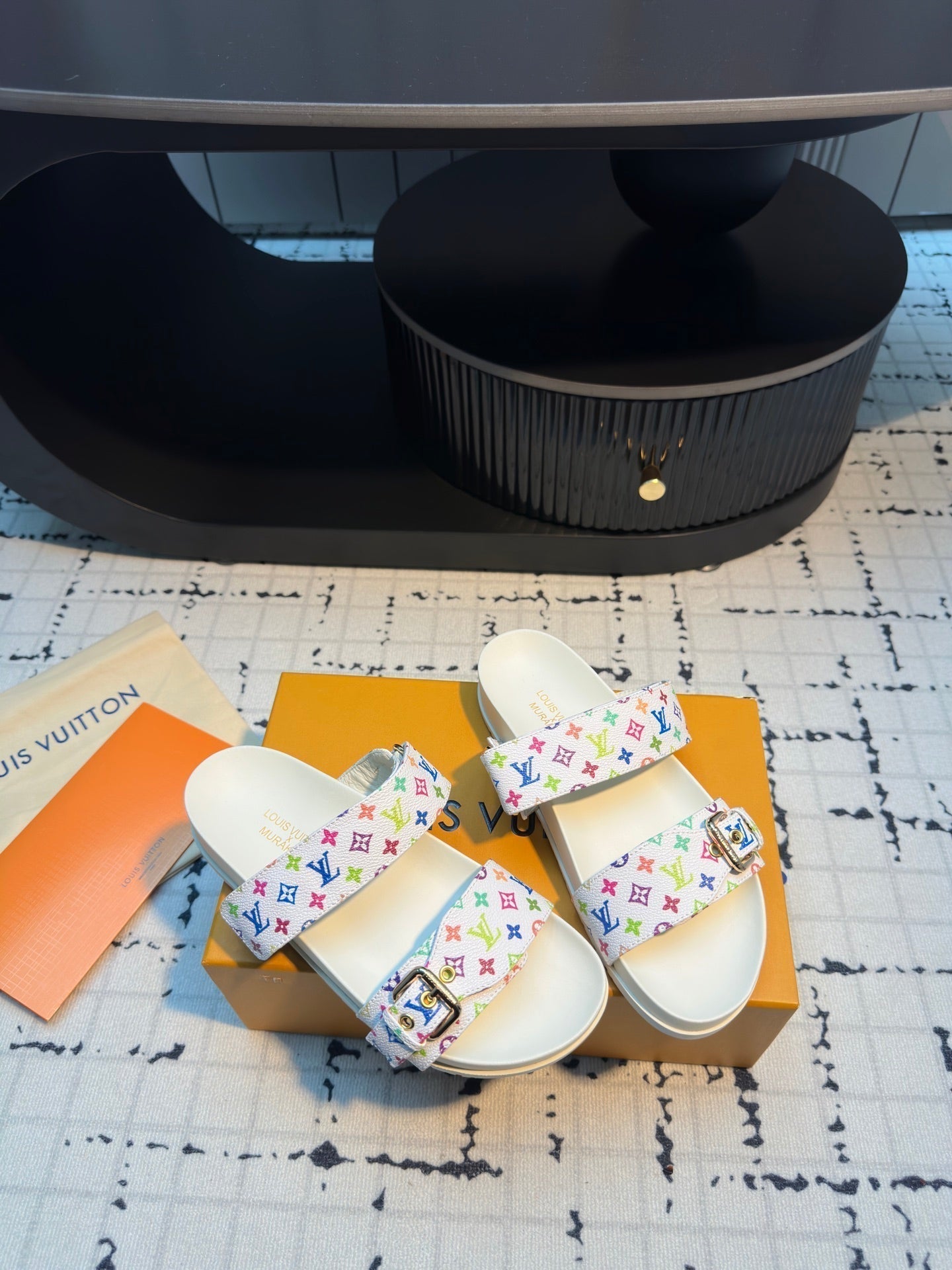 LV LV x TM Bom Dia Flat Comfort Mule Black with Monogram Multicolore Leather 218911