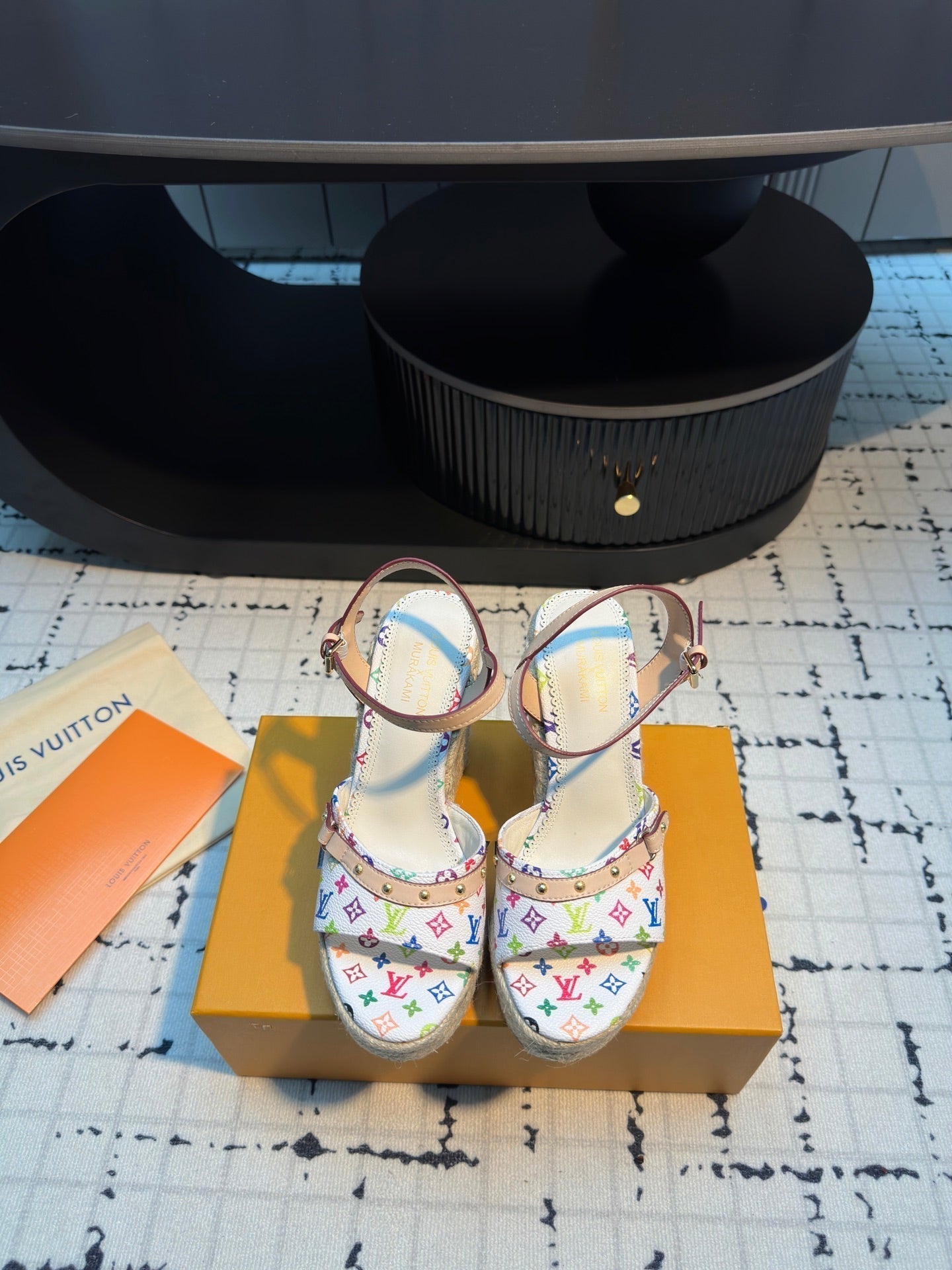 LV LV x TM Helios Wedge Sandal Black with Monogram Multicolore Leather 218917