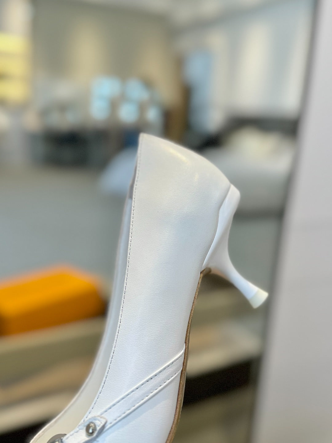 6AM 5.5cm White Leather Pumps 241207