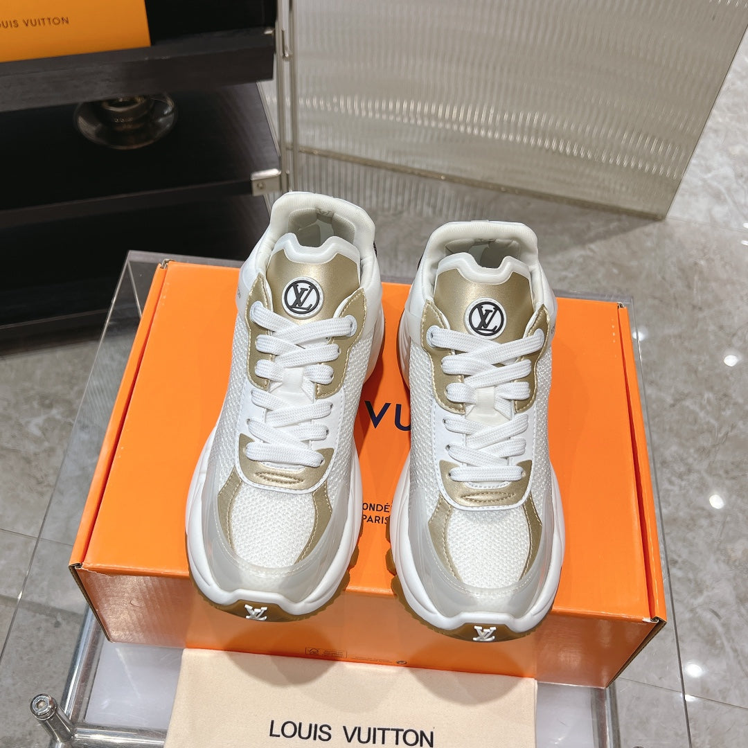 LV Run 55 Sneaker 55mm White Mix Gold Polyester Mesh Fabric