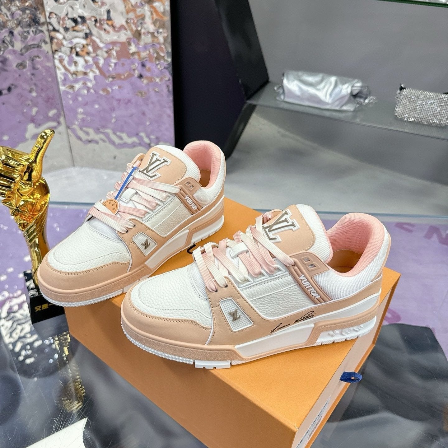 LV Run 55 Sneaker 50mm Brown Pink Polyester Mesh Fabric