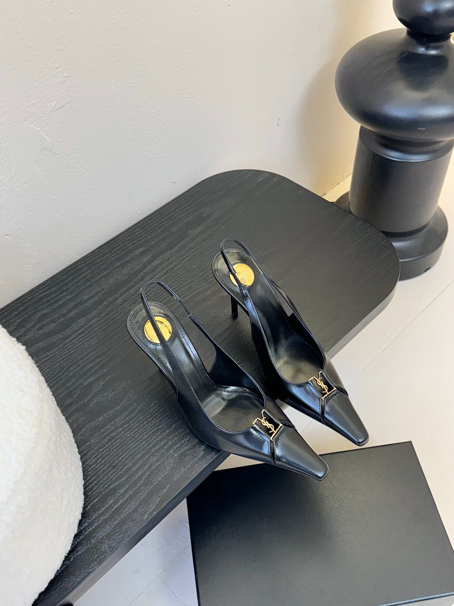 BABYLONE BRETEUIL SLINGBACK 85 MM PUMPS IN BLACK SMOOTH LEATHER