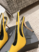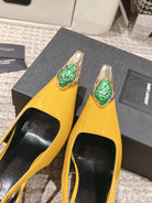 DUNE HIGH 10 CM SLINGBACK PUMPS IN CLASSIC YELLOW PATENT LEATHER WITH CRYSTAL