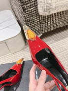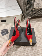 DUNE HIGH 10 CM SLINGBACK PUMPS IN RUBY RED PATENT LEATHER WITH CRYSTAL