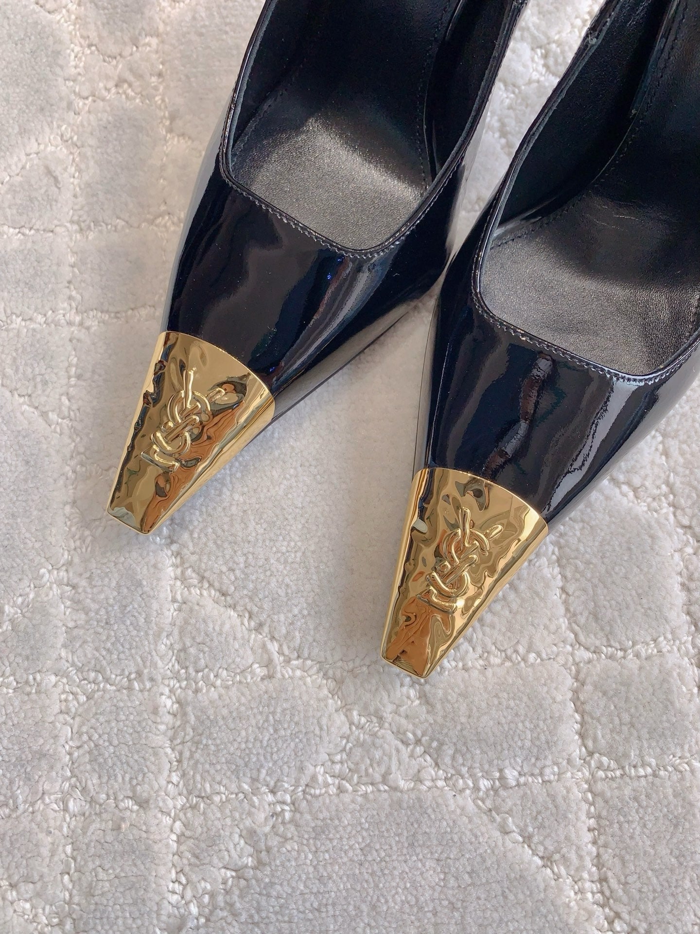 HIGH HEEL 10 CM PUMP IN BLACK PATENT CALFSKIN WITH GOLD HARDWARE