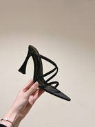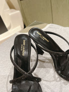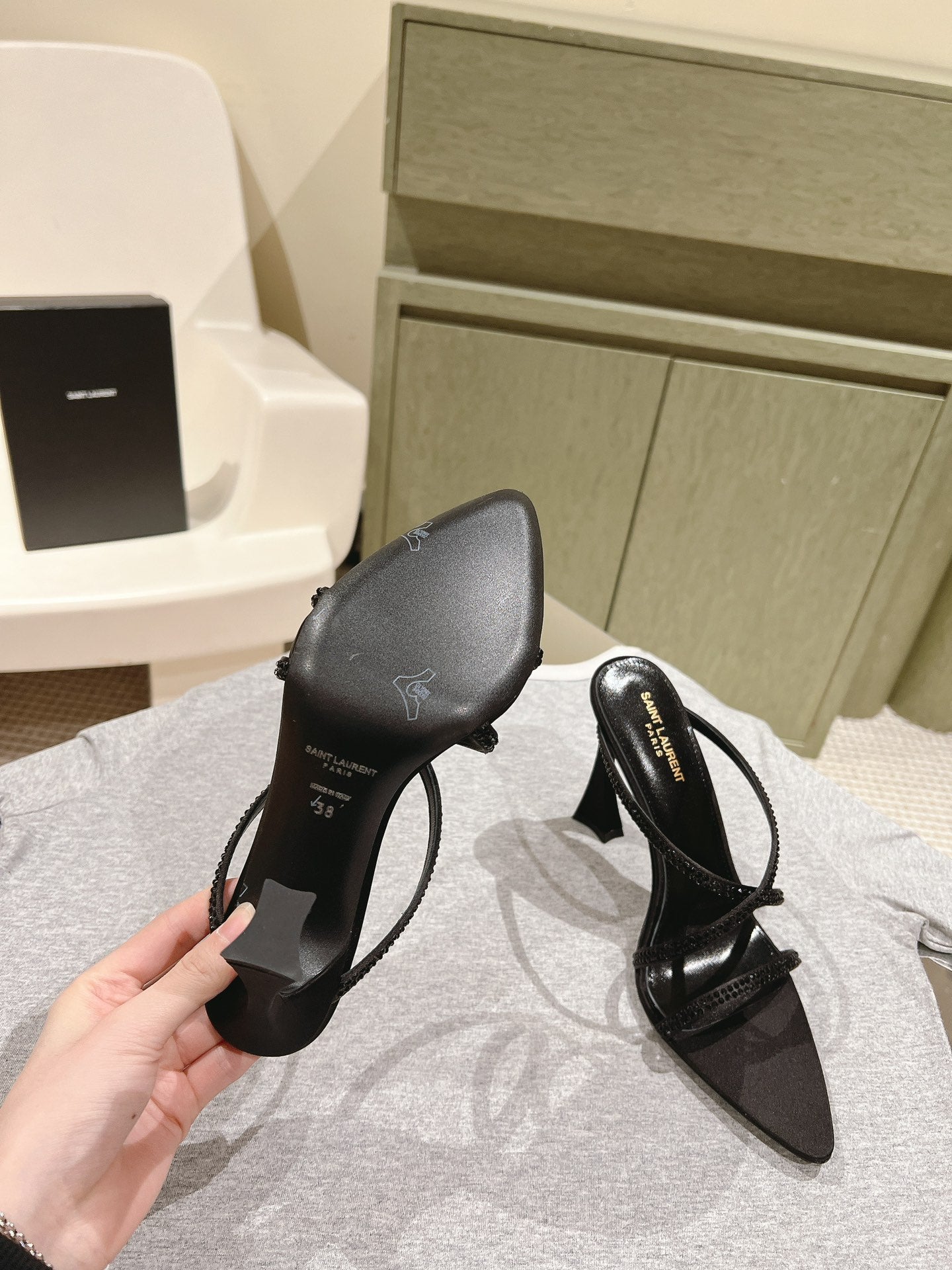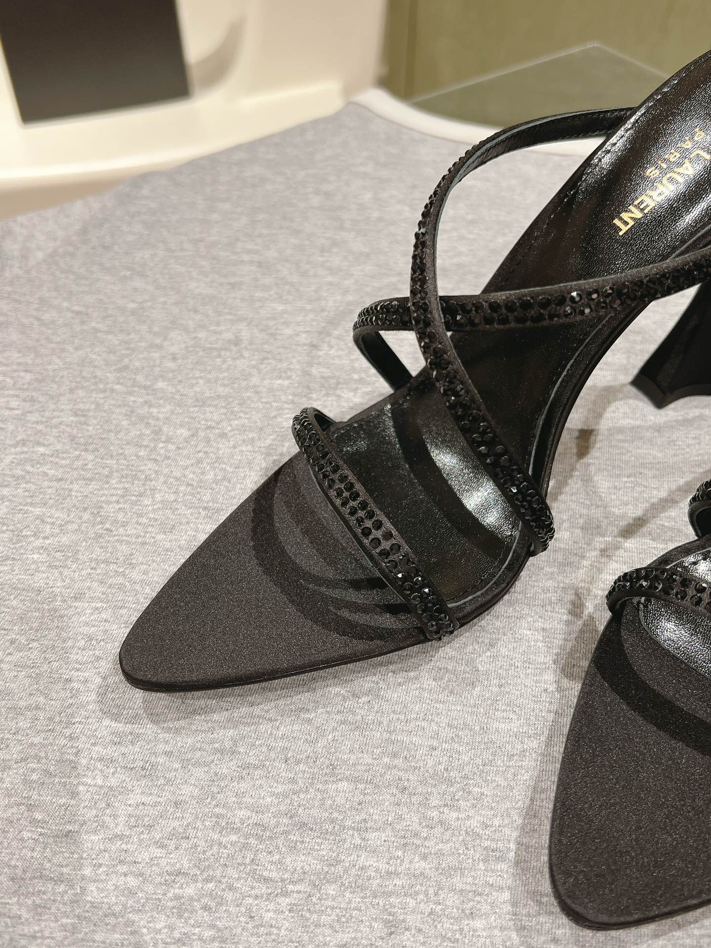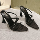 HIGH HEEL MULE 10 CM IN BLACK SATIN WITH RHINESTONES