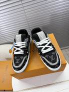 LV 1AJ340 Trainer Black Monogram-embroidered Denim Cafskin 511759