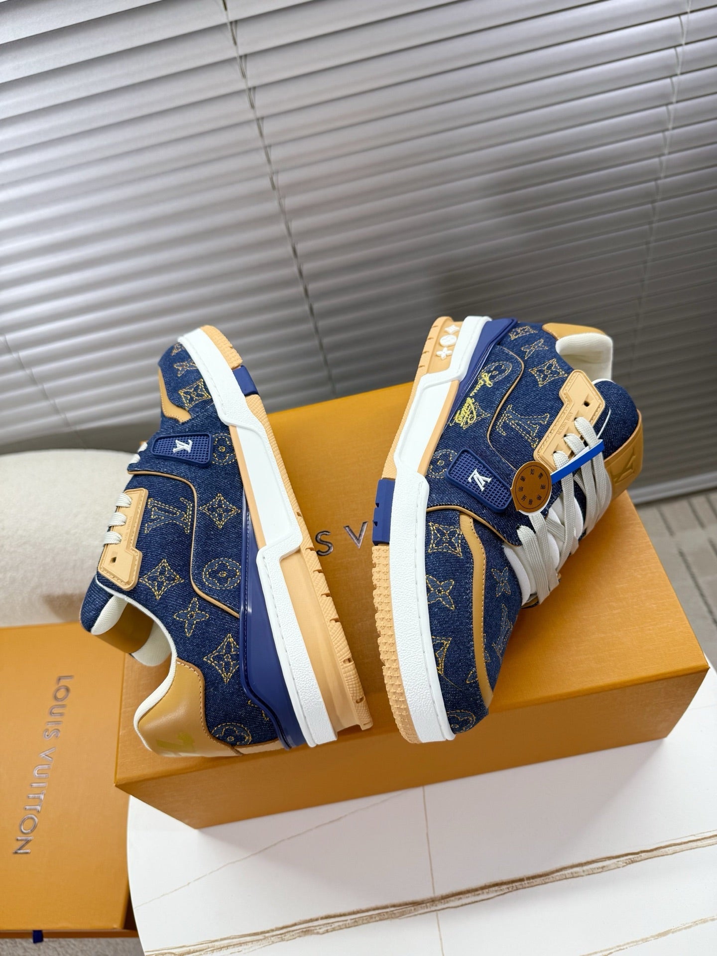 LV 1AJ360 Trainer Blue Monogram-embroidered Denim Cafskin 511760
