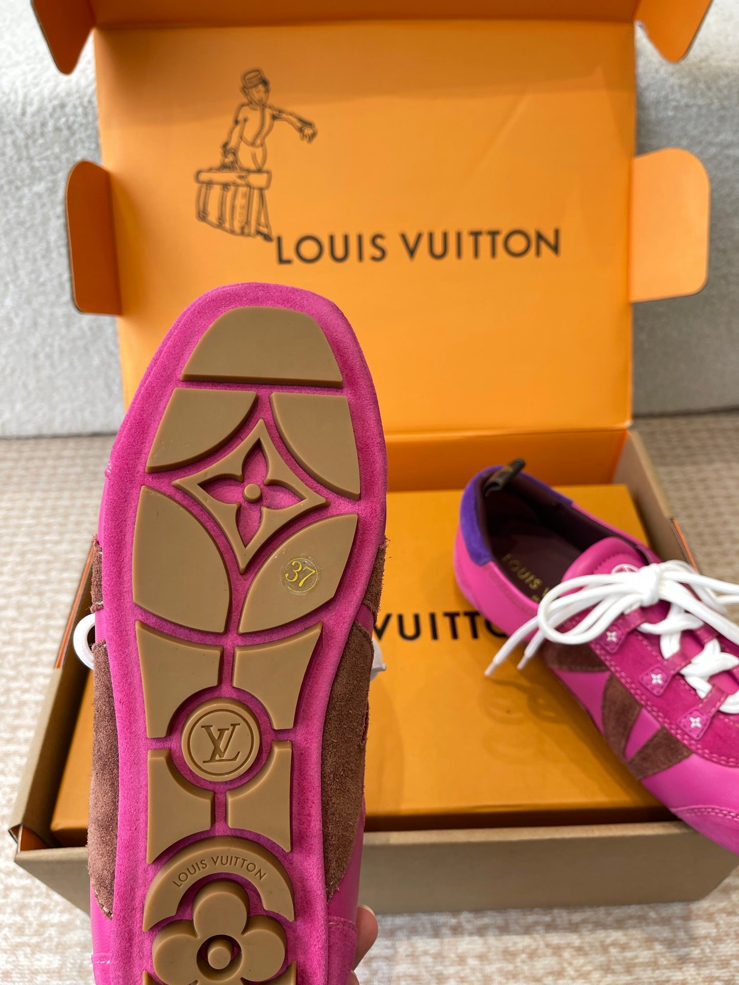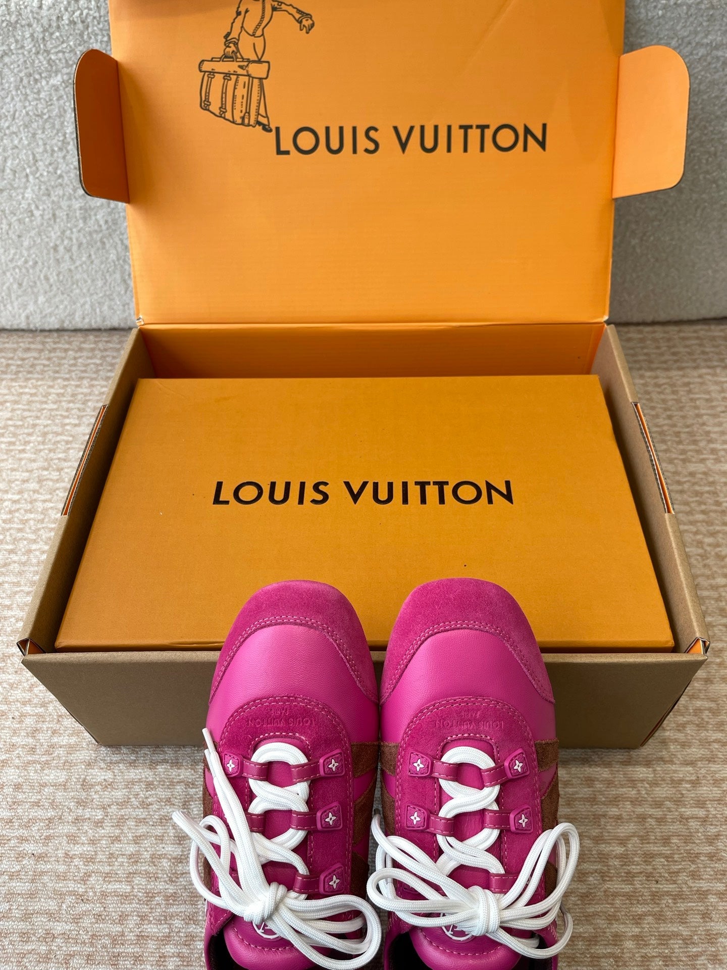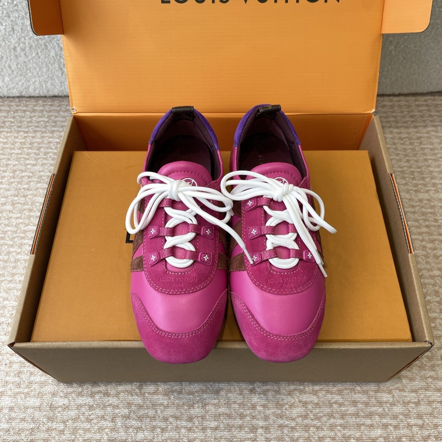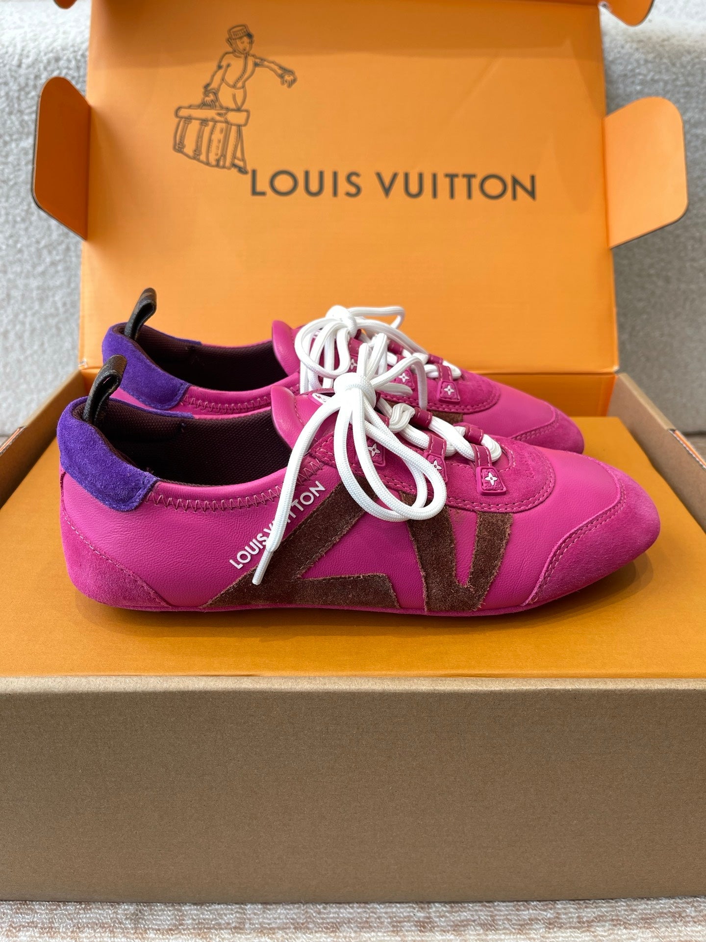 LV Sneakerina Hot Pink Mix Brown Mix Purple Suede Calfskin With Hot Pink Lambskin 298822