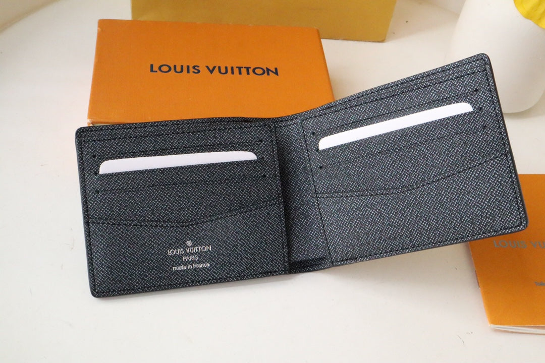 LV Logo Slender Wallet Black Blue Monogram Canvas 182771